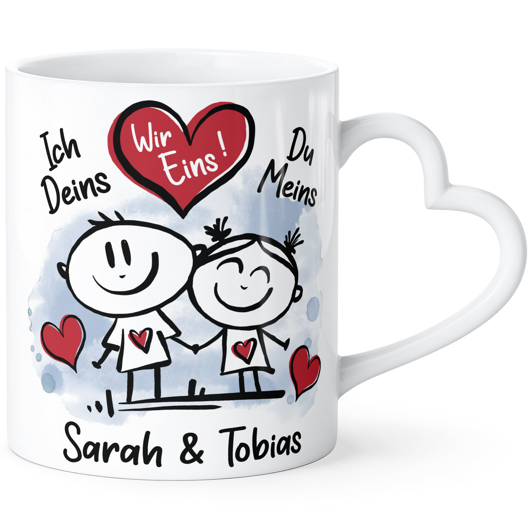 - Überrasche deinen Schatz mit einem liebvollen Geschenk, denn kleine Liebeserklärungen erhalten und beleben die Beziehung! Und wenn sie so herzerweichend süß ist wie unser verliebtes Strichmännchen-Paar mit den eigenen Namen und Spruch "Ich Deins, Du Meins, Wir Eins" steht einer langen zweisamen Zeit nix mehr im Weg! ;-)