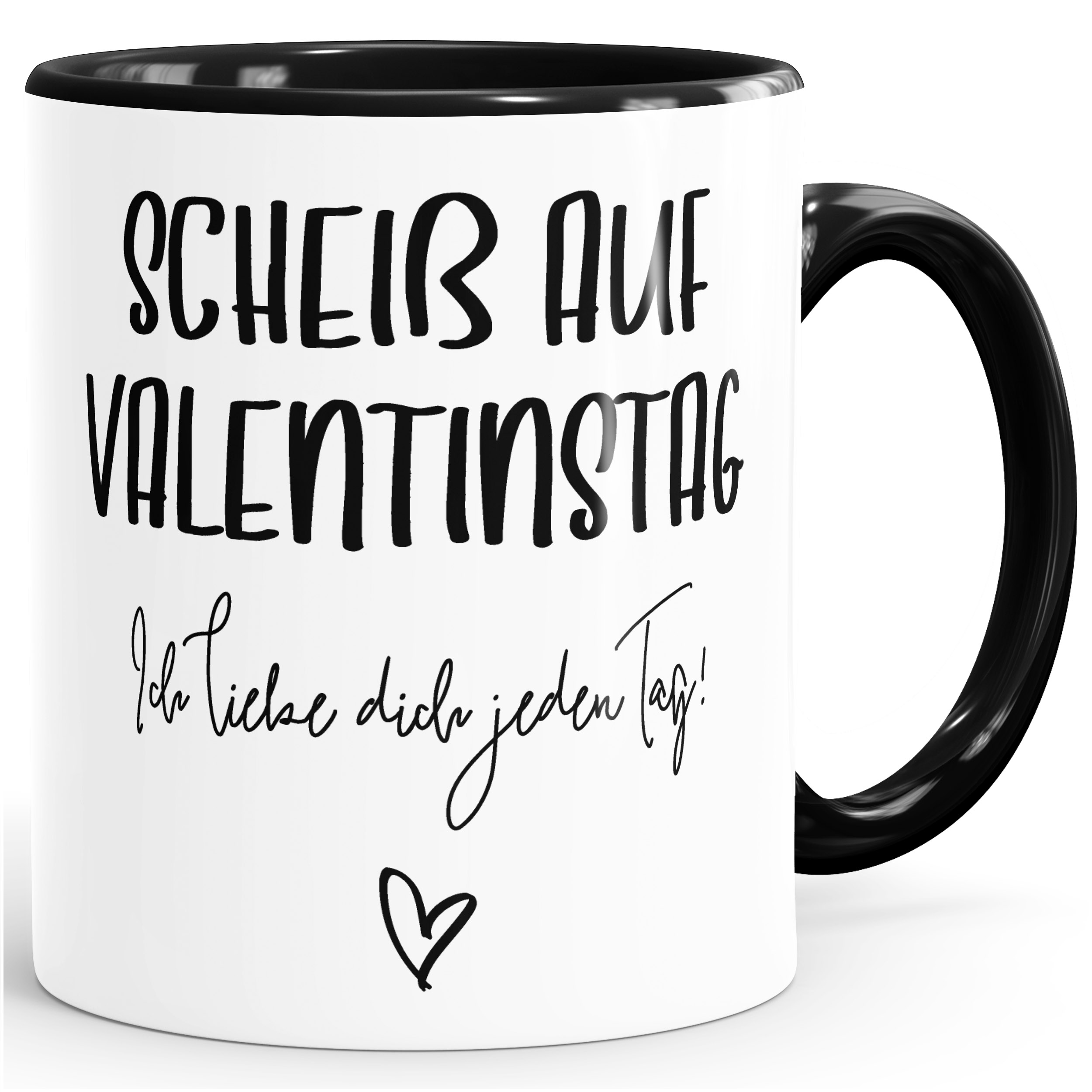 - Motiv (rundum bedruckt): Scheiß auf Valentinstag Ich liebe dich jeden Tag