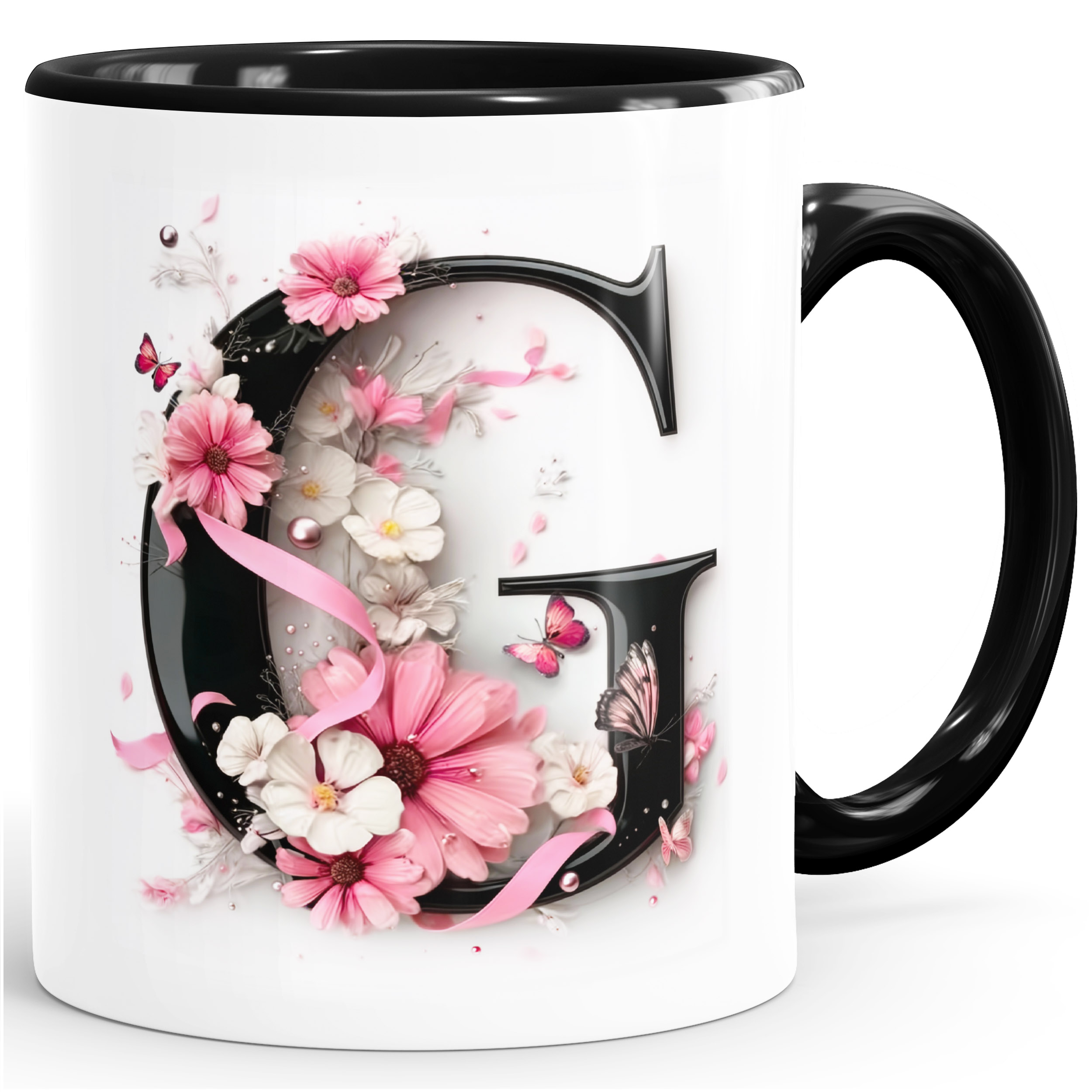 - Vielseitig einsetzbare Kaffeetasse mit floral verziertem Buchstabe für Zuhause, Büro oder Homeoffice – zeitlos, modern und ein echter Hingucker auf jedem Tisch