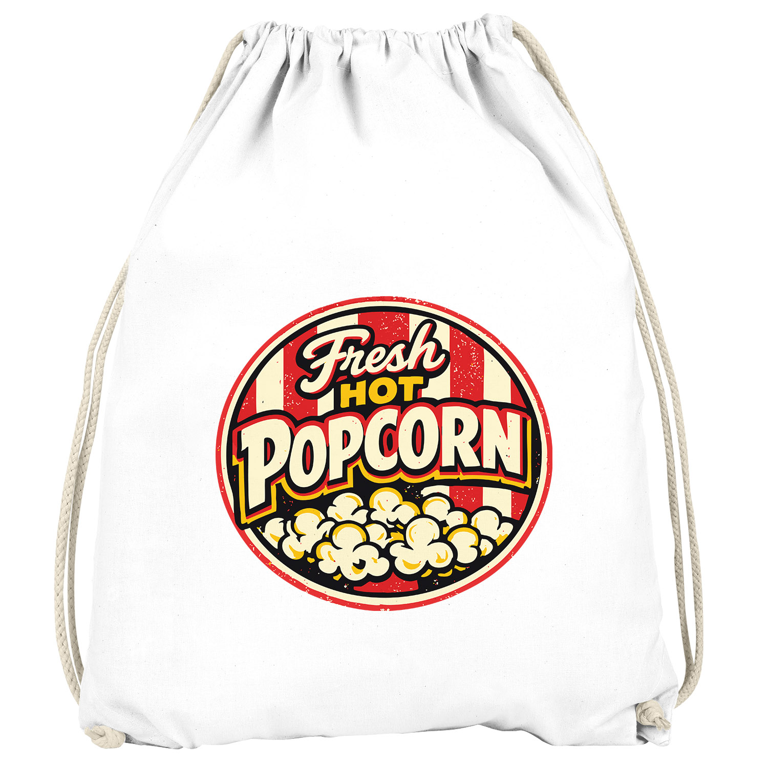 Turnbeutel - Fresh Hot Popcorn - Fasching Karneval Gadgets Spruch lustig Faschingsartikel Accessoires Tasche Gymbag Moonworks®