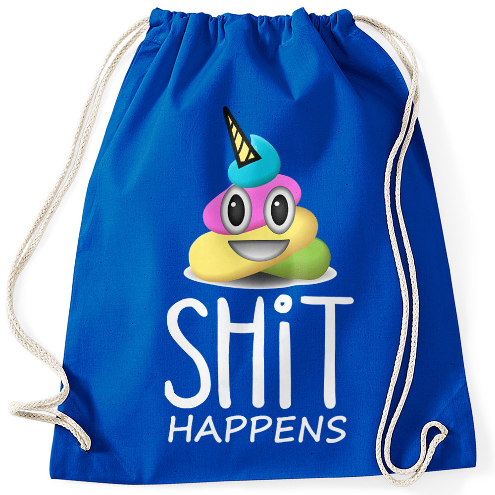 - cooler Turnbeutel mit lustigem "Sh*t Happens" Schriftzug und buntem Kackhaufen der Marke Moonworks®