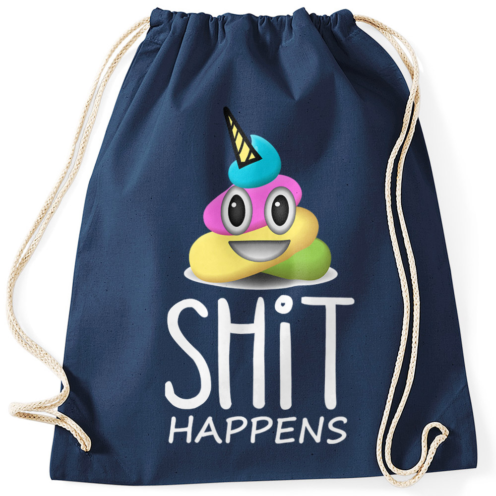 - cooler Turnbeutel mit lustigem "Sh*t Happens" Schriftzug und buntem Kackhaufen der Marke Moonworks®
