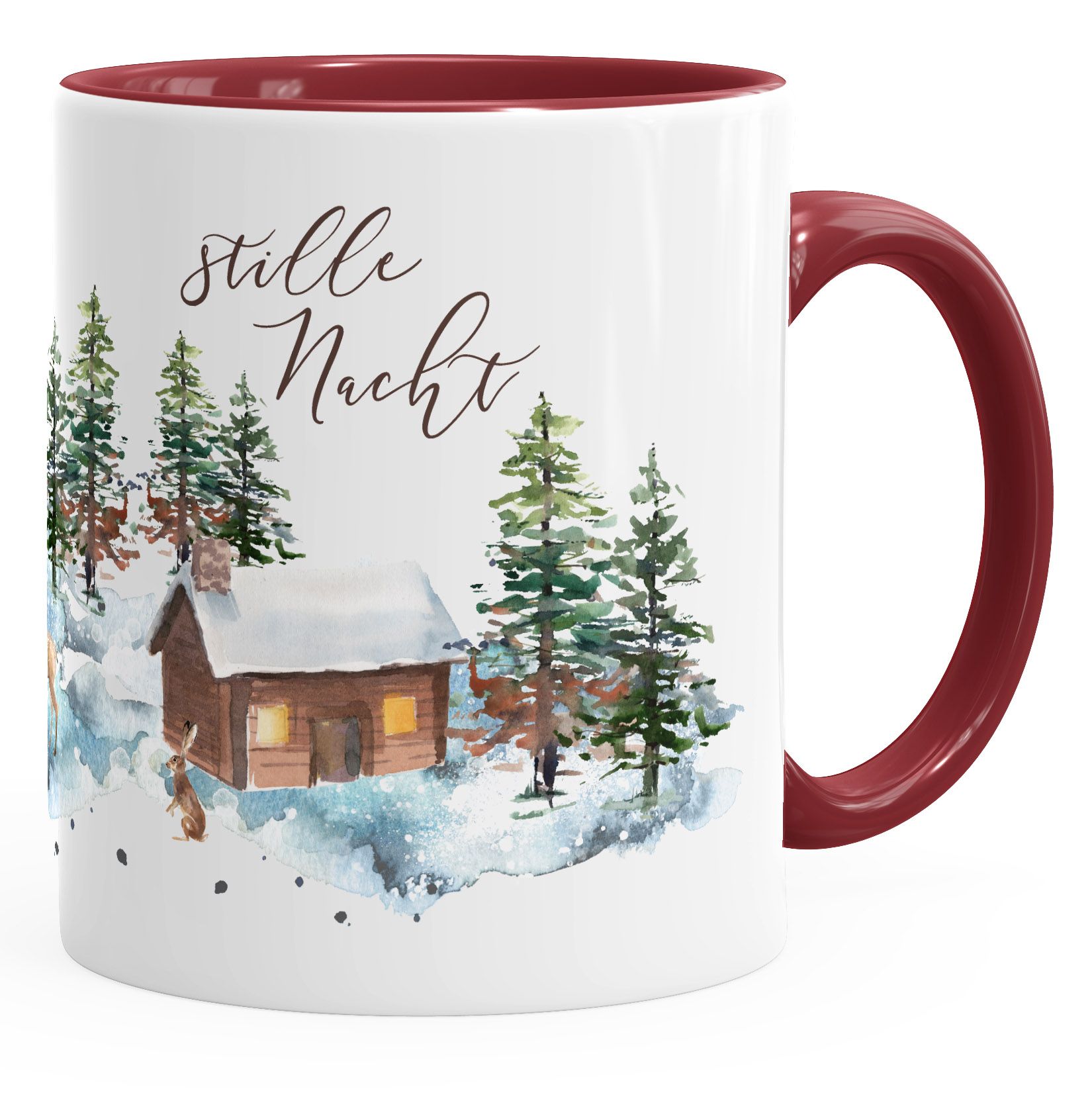 - Die Kaffeetasse für die schönste Zeit des Jahres: Weihnachtstasse mit "Stille Nacht" Motiv und wunderschöner Winterlandschaft sowie farbigem Henkel und Interieur der Marke Autiga®
