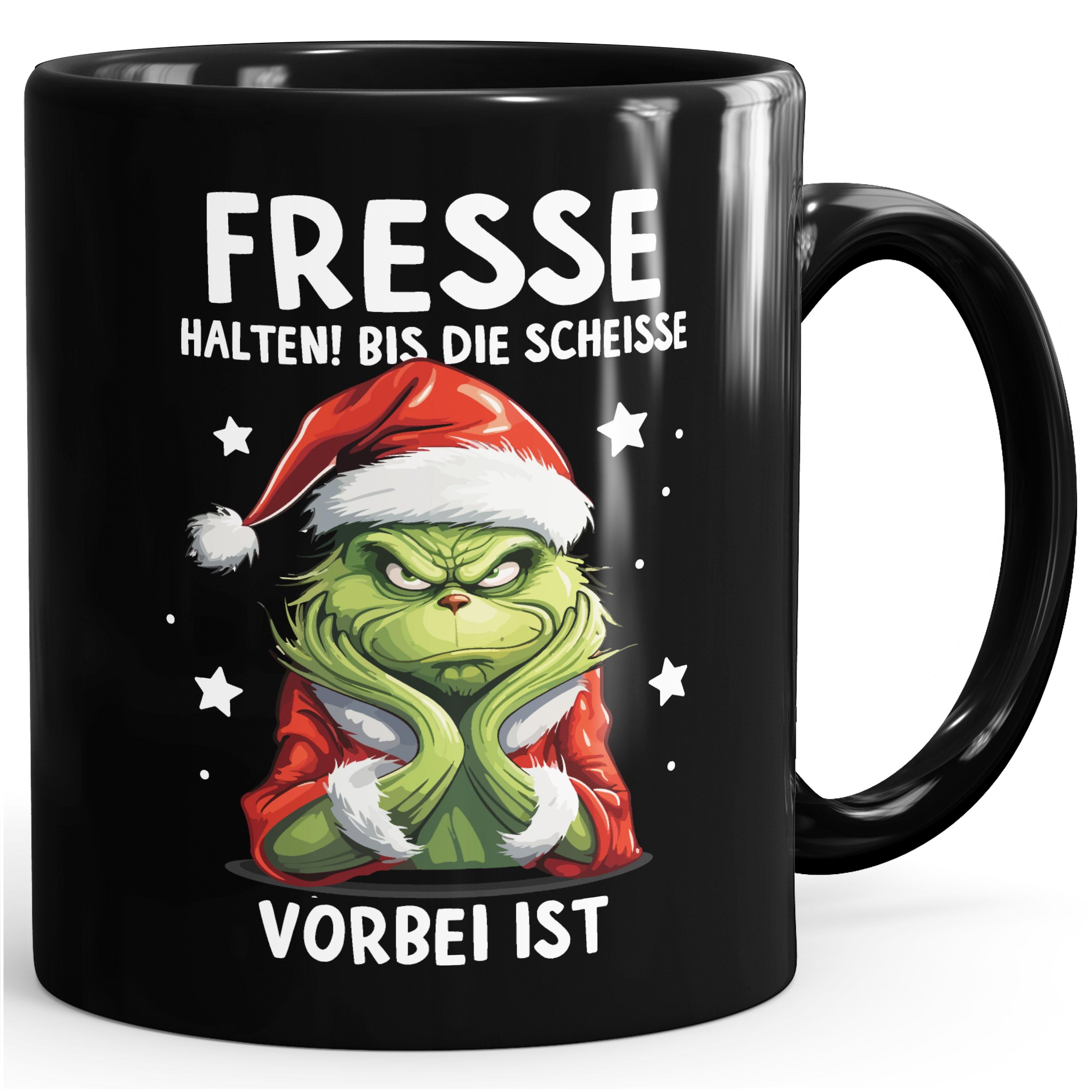 • Hochwertige Kaffeetasse mit sarkastischem Weihnachts-Motiv der Marke Moonworks®. Mit 3 ironischen Weihnachtssprüchen zur Auswahl: "MiMiMi - Halts Maul" | "Fresse halten! Bis der Scheiss vorbei ist" | "Schöne Scheiss-Weihnachten"