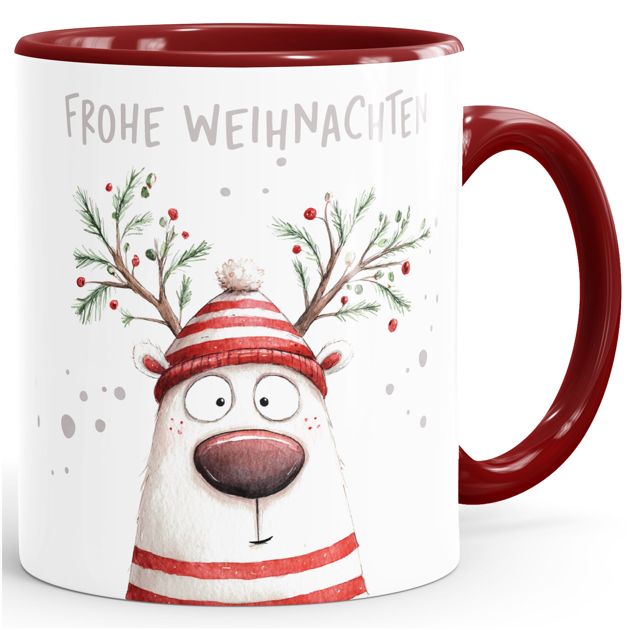 - Die Tasse mit Weihnachtsmotiv ist spülmaschinengeeignet für eine leichte Reinigung und hohe Haltbarkeit. Sie hat eine formschöne Komfortgröße mit ca. 325 ml Fassungsvermögen und großem Henkel für einen optimalen Griff