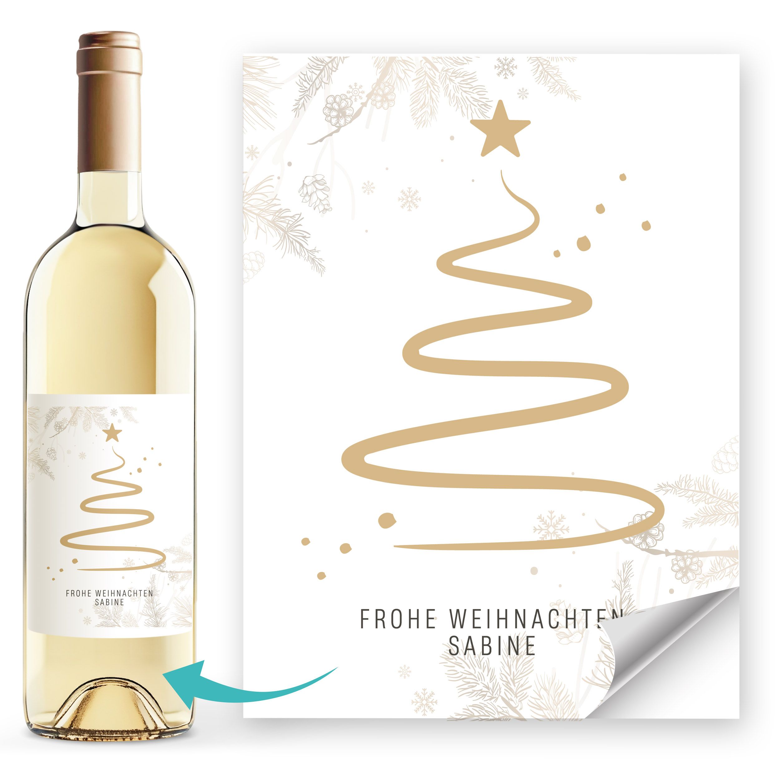 - Modernes Weinetikett mit schlichter, edler Typografie und goldenem Weihnachtsbaum – ideal als hochwertiges Weihnachtspräsent, stilvolle XMAS Deko oder als kleiner Weihnachtsgruß. Perfekt für minimalistische Deko-Liebhaber und individuelle Weingeschenke zu Weihnachten