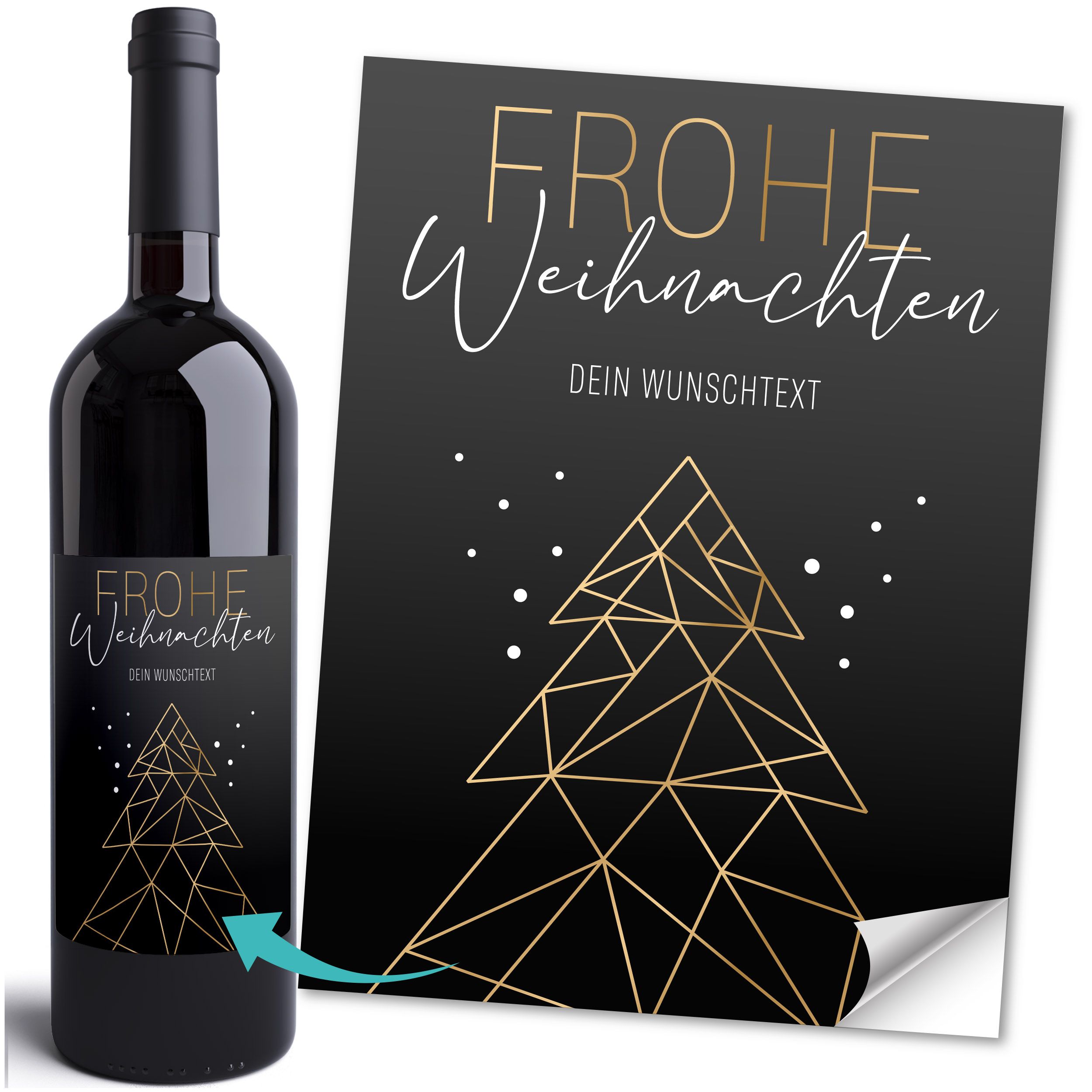 - Elegantes Weinetikett Weihnachten mit modernem geometrischem Weihnachtsbaum und Wunschtext – personalisierbares Flaschenetikett für stilvolle Weihnachtsgeschenke und hochwertige XMAS Deko