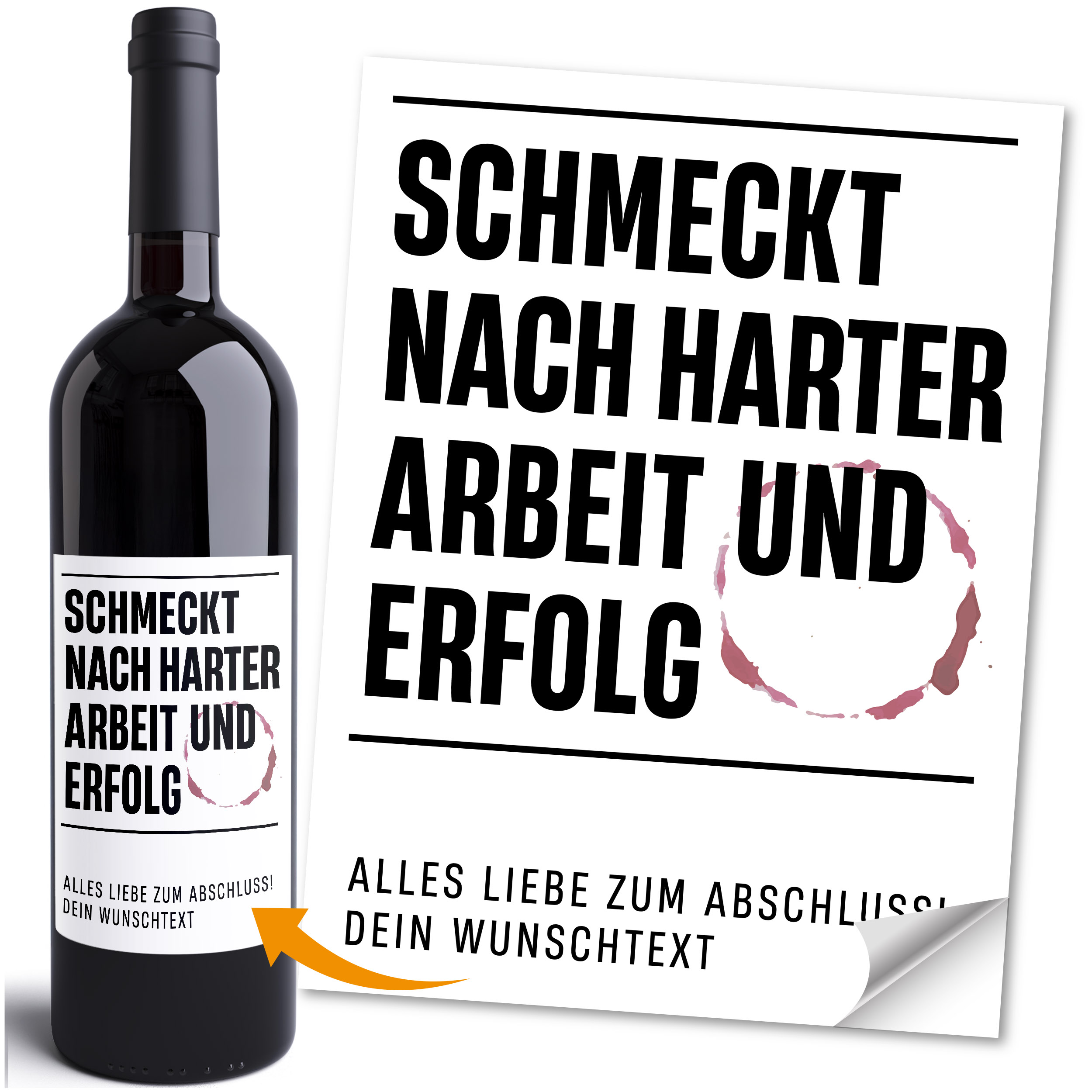 Weinetikett selbstklebend - Geschenk Abschluss - personalisiert mit Wunschtext - Spruch Schmeckt nach Arbeit und Erfolg Moonworks®