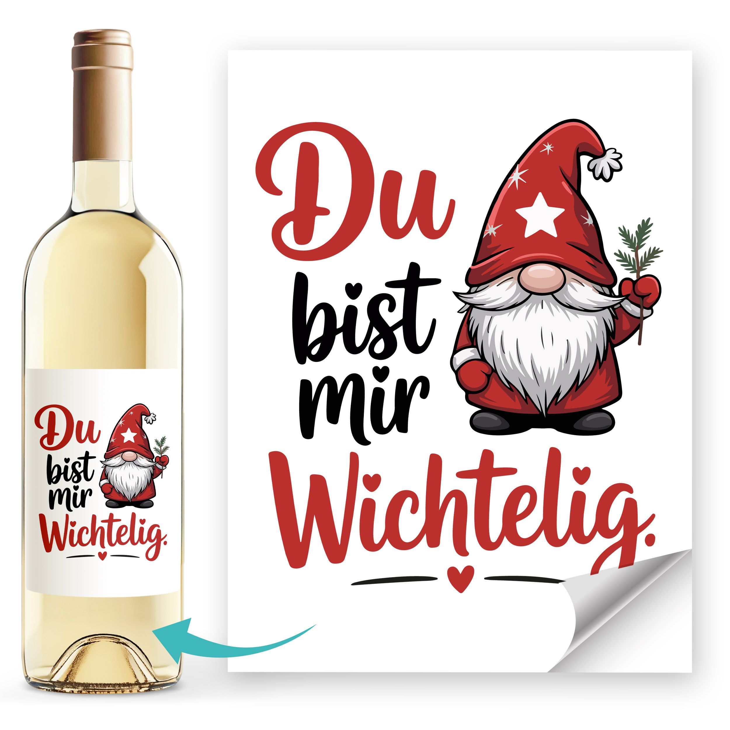 - Ein kleiner Spruch mit großer Wirkung: Der Flaschenaufkleber „Du bist mir wichtelig“ trifft mitten ins Herz – und passt perfekt auf eine Wein- Flasche. Das ideale Weihnachtsgeschenk mit Humor für Lieblingsmenschen und Weinliebhaber