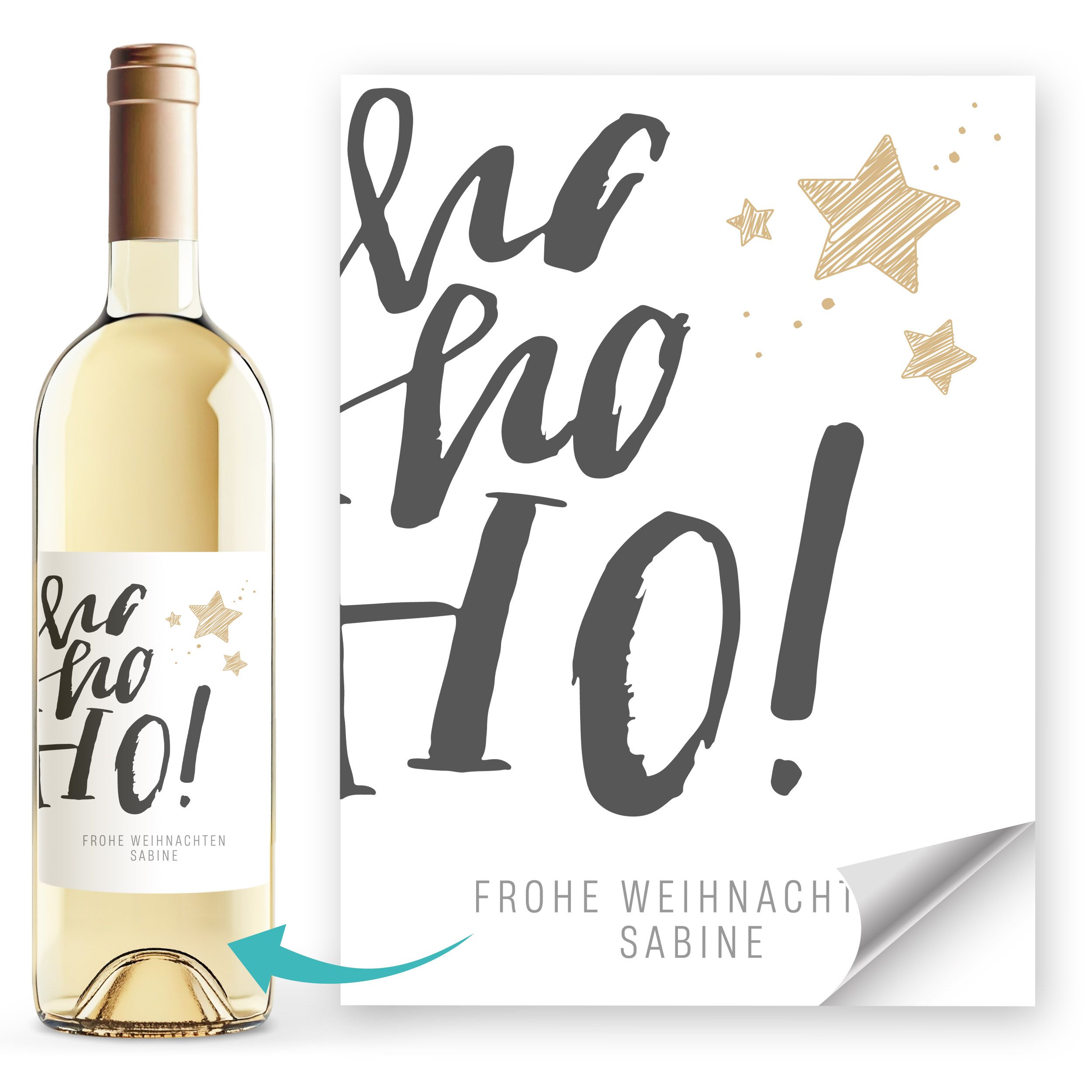 - Freches personalisierbares „Ho Ho Ho“-Weinetikett im modernen Design mit goldenem Weihnachtsbaum – der ideale Hingucker für lustige Weihnachtsabende, Wichtelgeschenke und festliche Weinpräsente. Perfekt als Flaschenaufkleber Weihnachten für humorvolle XMAS Stimmung