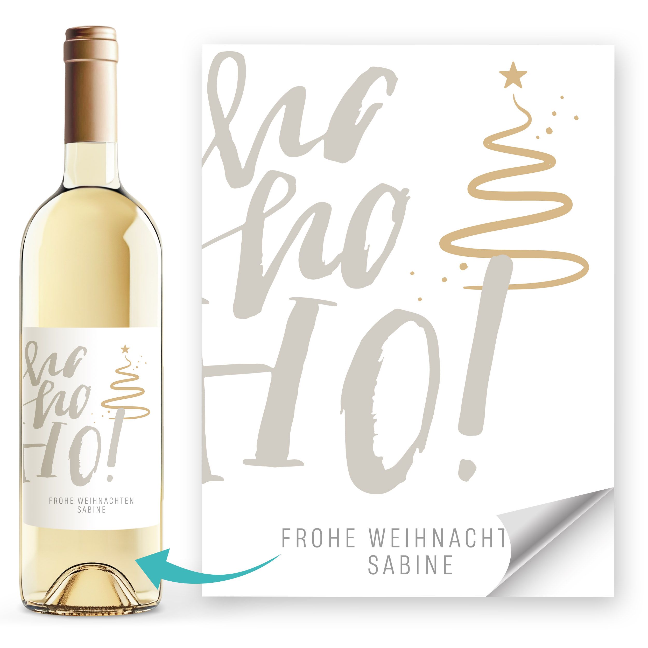 - Freches personalisierbares „Ho Ho Ho“-Weinetikett im modernen Design mit goldenem Weihnachtsbaum – der ideale Hingucker für lustige Weihnachtsabende, Wichtelgeschenke und festliche Weinpräsente. Perfekt als Flaschenaufkleber Weihnachten für humorvolle XMAS Stimmung