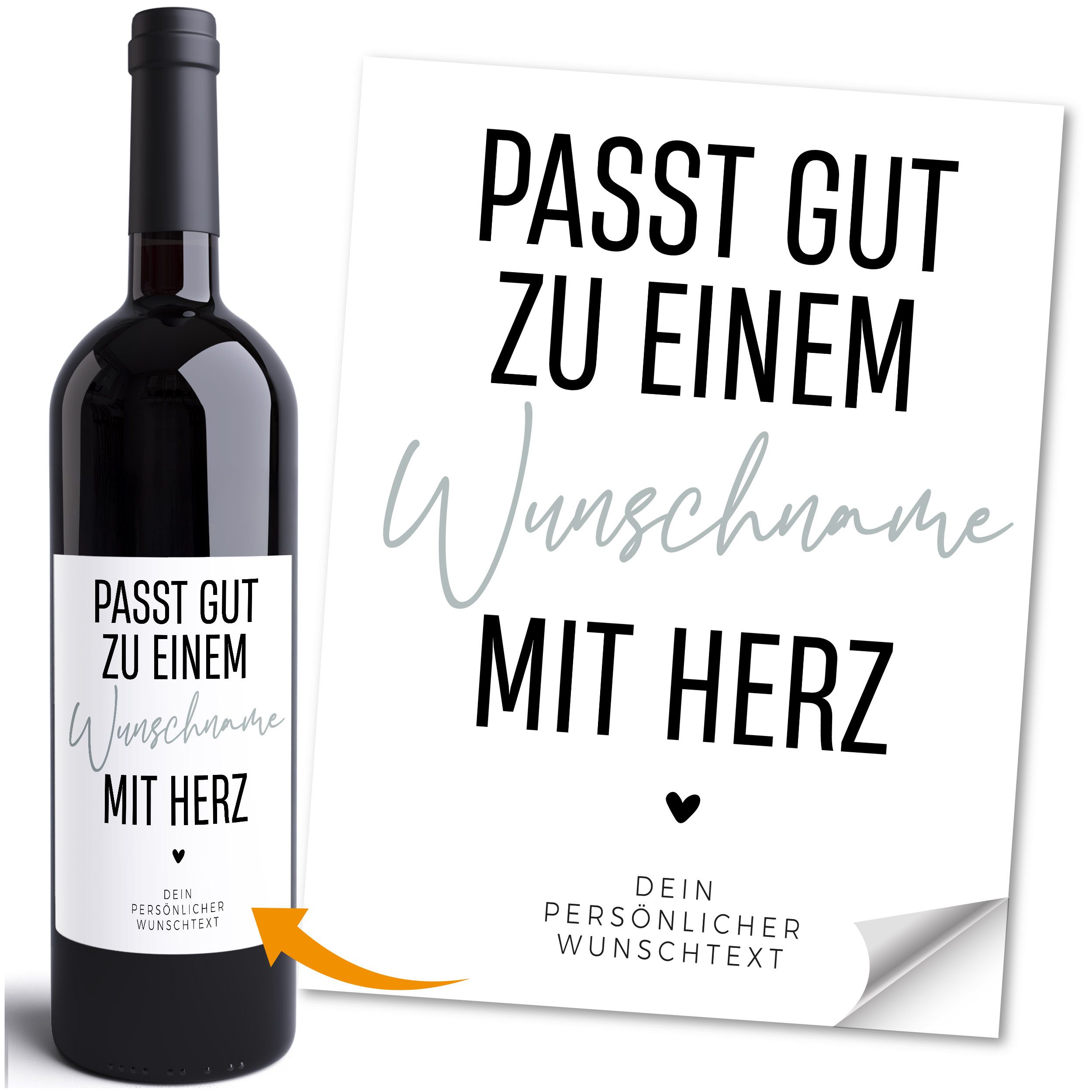 Weinetiketten personalisiert Wunschtext Flaschenetikett Weingeschenk Passt gut zu einem Lieblingsmensch mit Herz Moonworks®