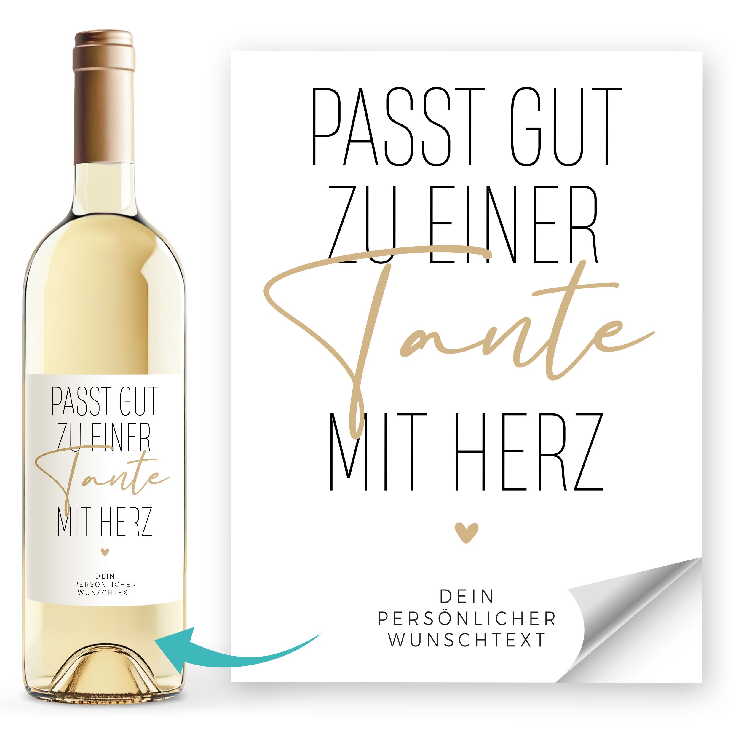 Suchst du nach einem einzigartigen Geschenk für Erwachsene, die gerne Wein trinken? Unsere personalisierten Weinetiketten verwandelt jede Weinflasche in ein stilvolles und kreatives Präsent. Perfekt als Mama Geschenk, Tante Geschenk oder Oma Geschenk, aber auch ideal für Papa, Opa oder Onkel–oder als Geburtstagsgeschenk oder Weihnachtsgeschenk für Männer und Frauen. Eine Weinflasche personalisieren mit deinem eigenen Text oder Motiv - damit wird dein Wein-Geschenk zu etwas ganz Besonderem.