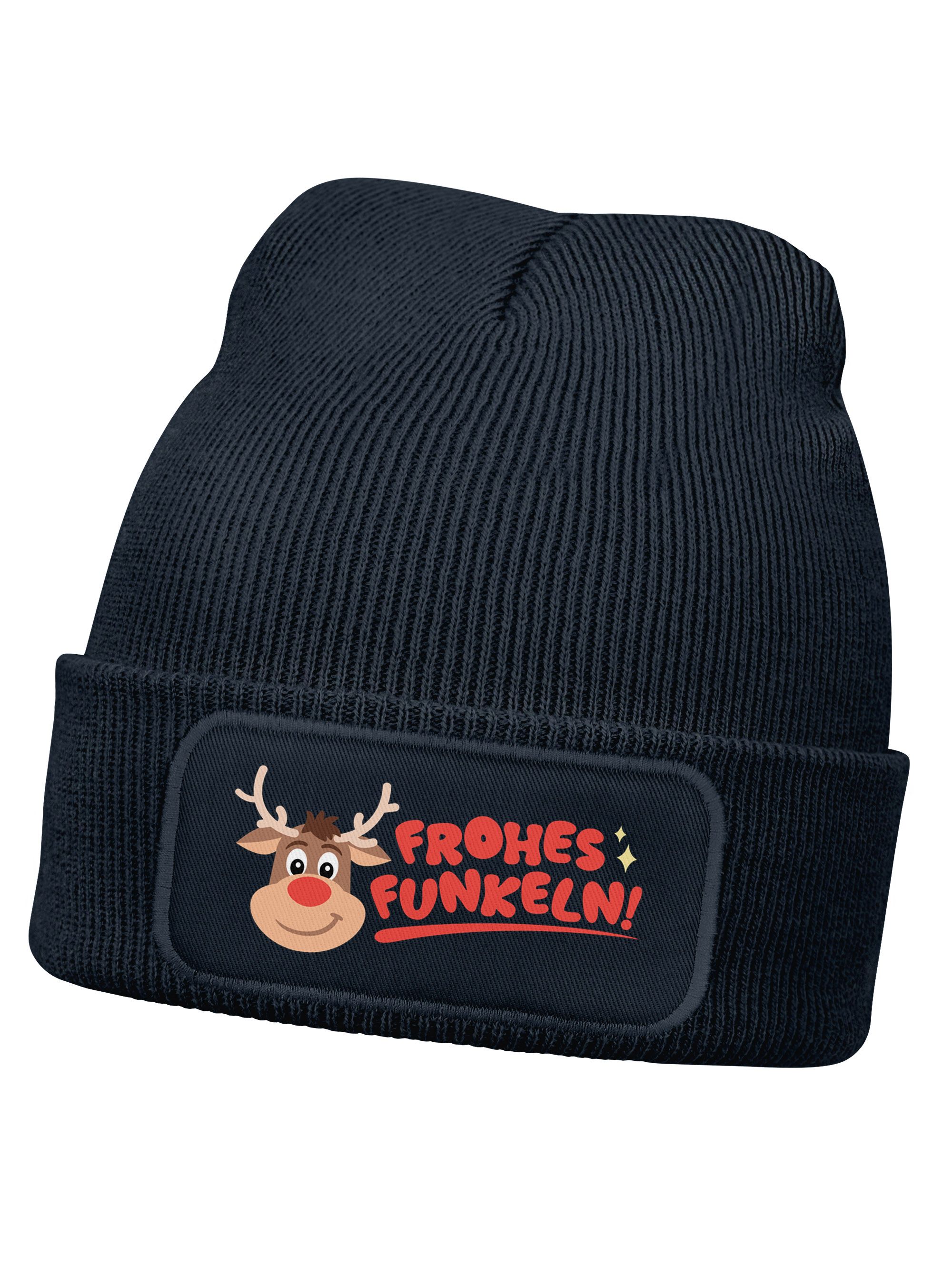 Wintermütze Kinder Mädchen Patch Rentier Rudolf Comicfigur Aufdruck Weihnachten Print Strickmütze MoonWorks®