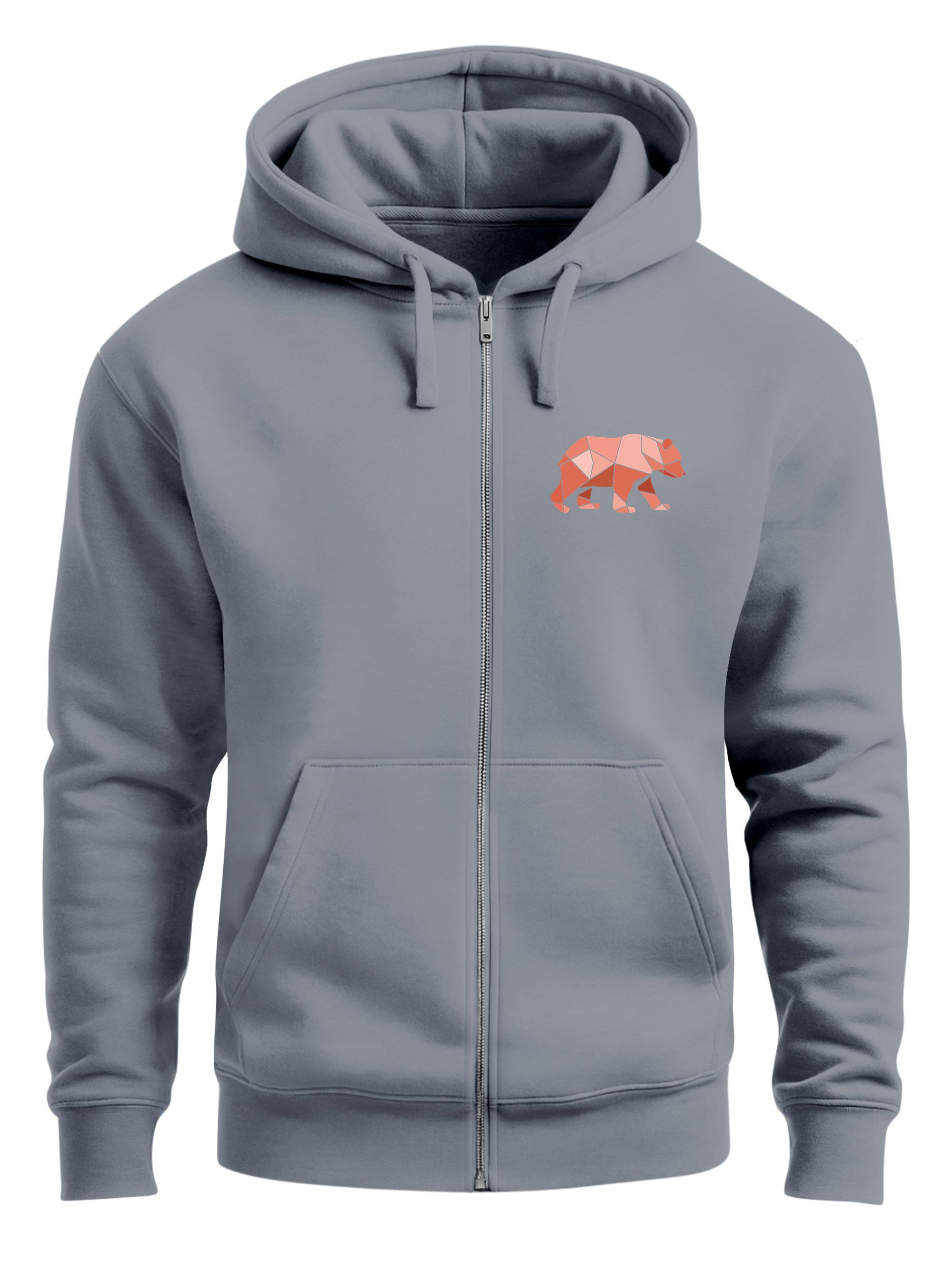 - Ein geometrisches Bärenmotiv ziert diesen lässigen Zip Hoodie für Männer auf der linken Brust. Der minimalistische Polygon-Print verleiht ihm das gewisse Etwas. Eine hochwertige Basic-Jacke, der zu vielen Outfits und Styles passt.