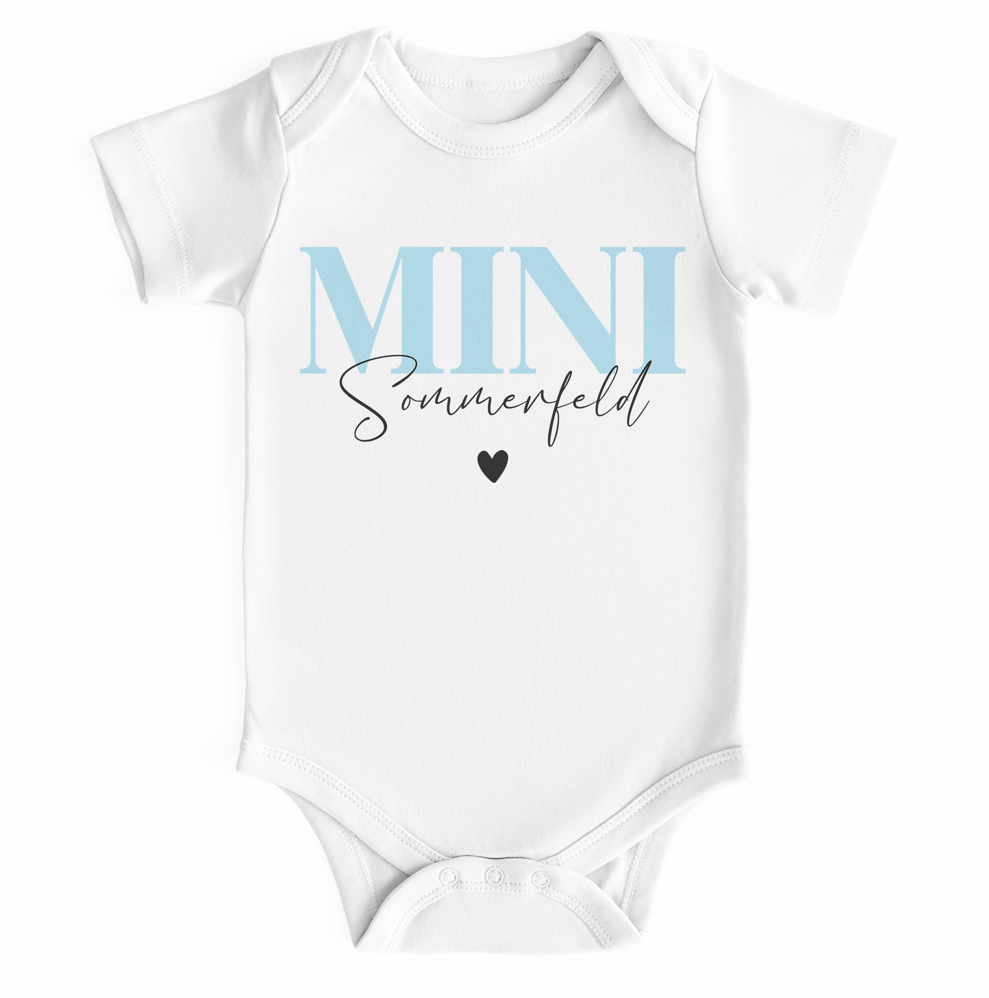 - Niedllicher Babybody mit dem anpassbarem Schriftzug „Mini“ und deinem Familiennamen – ein trendiges Outfit für kleine Lieblingsmenschen und ein herzallerliebstes Geschenk zur Geburt oder Taufe im echten Mini-Me-Style. Einfach "Jetzt anpassen" und Wunschname eingeben