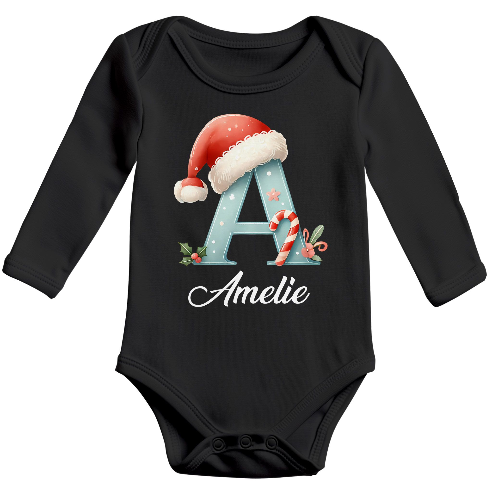 - Weihnachtliches Design mit Initialen: Der große Anfangsbuchstabe im Winter-Look mit Weihnachtsmütze und allerlei Weihnachtsdeko macht diesen langärmeligen-Babybody zu einem echten Hingucker.Ein zuckersüßes Weihnachtsoutfit für kleine Mädels und Jungs fürs erste oder zweite Weihnachtsfest