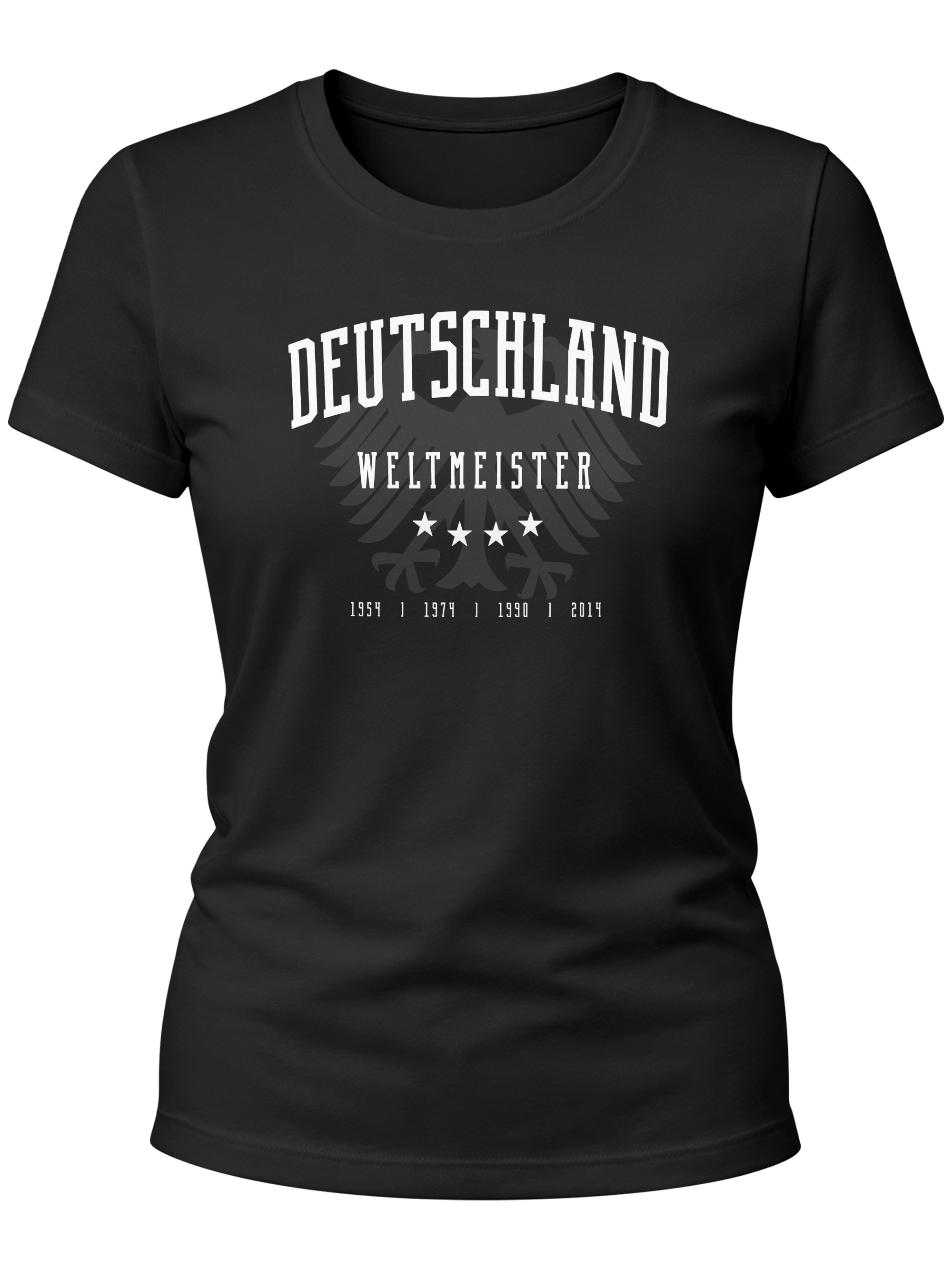 Die MoonWorks® Fanshirts für Damen sind inspiriert von dieser Fan-Euphorie. Aber auch von coolen Fashion-Designs und der Leidenschaft zu Mode und dem Sport. So entstehen Shirts fernab von Mainstream. Eine kreative Kombination aus Fashion-Shirts und sportiven Trikots. Dieses Shirt begeistert mit seinem starken Deutschland Print. Mit dem Bundesadler auf der Brust und den errungenen Sternen vor Augen fühlen wir uns doch gleich viel stärker!