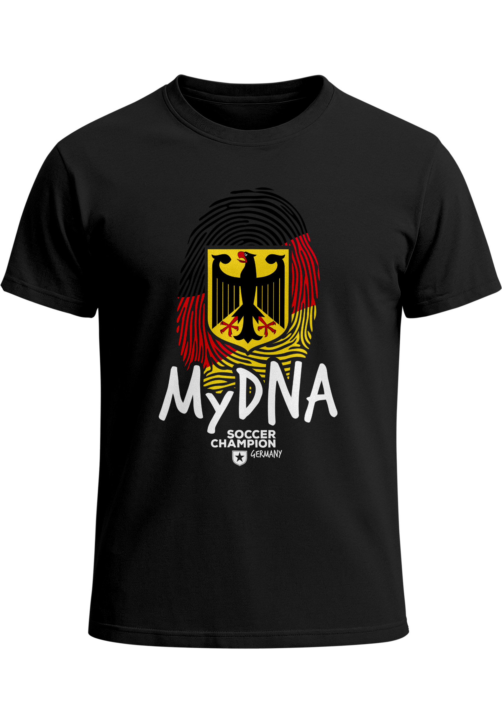 • cooles WM Deutschland Fan Herren T-Shirt mit hochwertigem Druck Motiv: Deutschlandflagge als Fingerabdruck - My DNA - der Marke MoonWorks®