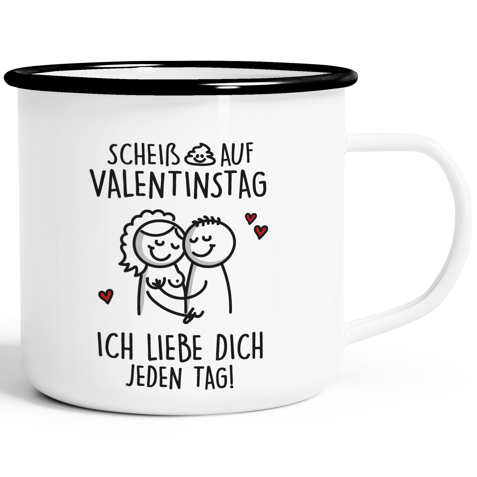 • Du suchst ein lustiges Geschenk zum Valentinstag? Ein kleines, aber witziges Geschenk ist diese Kaffeetasse bedruckt mit lustigen... sich befummelnden ;-) ...Strichmännchen und Spruch "Scheiß auf Valentinstag ich liebe dich jeden Tag"