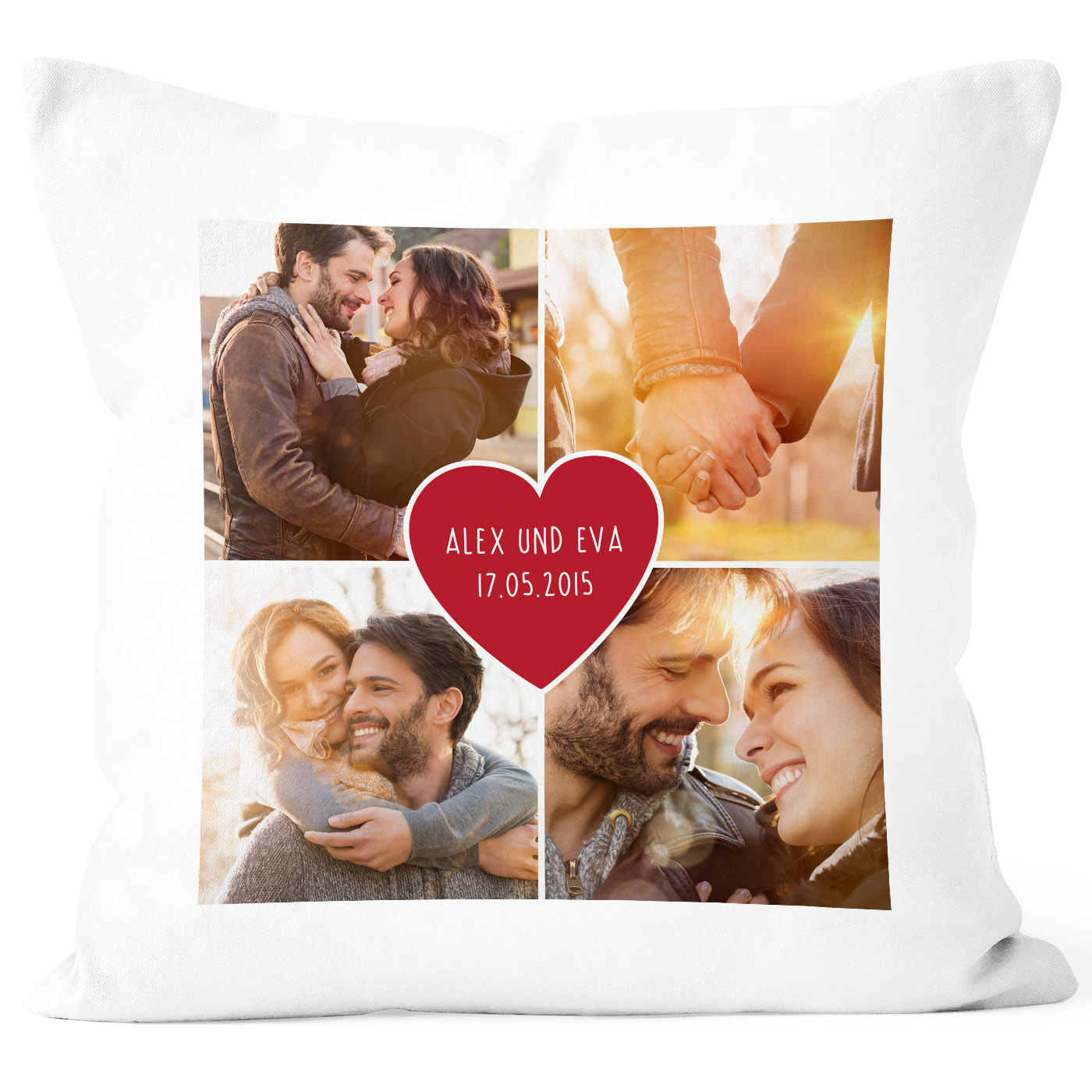 - Die perfekte individuelle Geschenkidee für deine(n) Liebste(n): eine Kissenhülle mitselbstgestalteter Fotocollage! Mit deinen Lieblingsbildern und personalisiert mit Namen, Datum, eigenem Wunsch-Text oder auch einem individalisierbaren Kalenderblatt entsteht so ein einzigartiges Partner-Geschenk