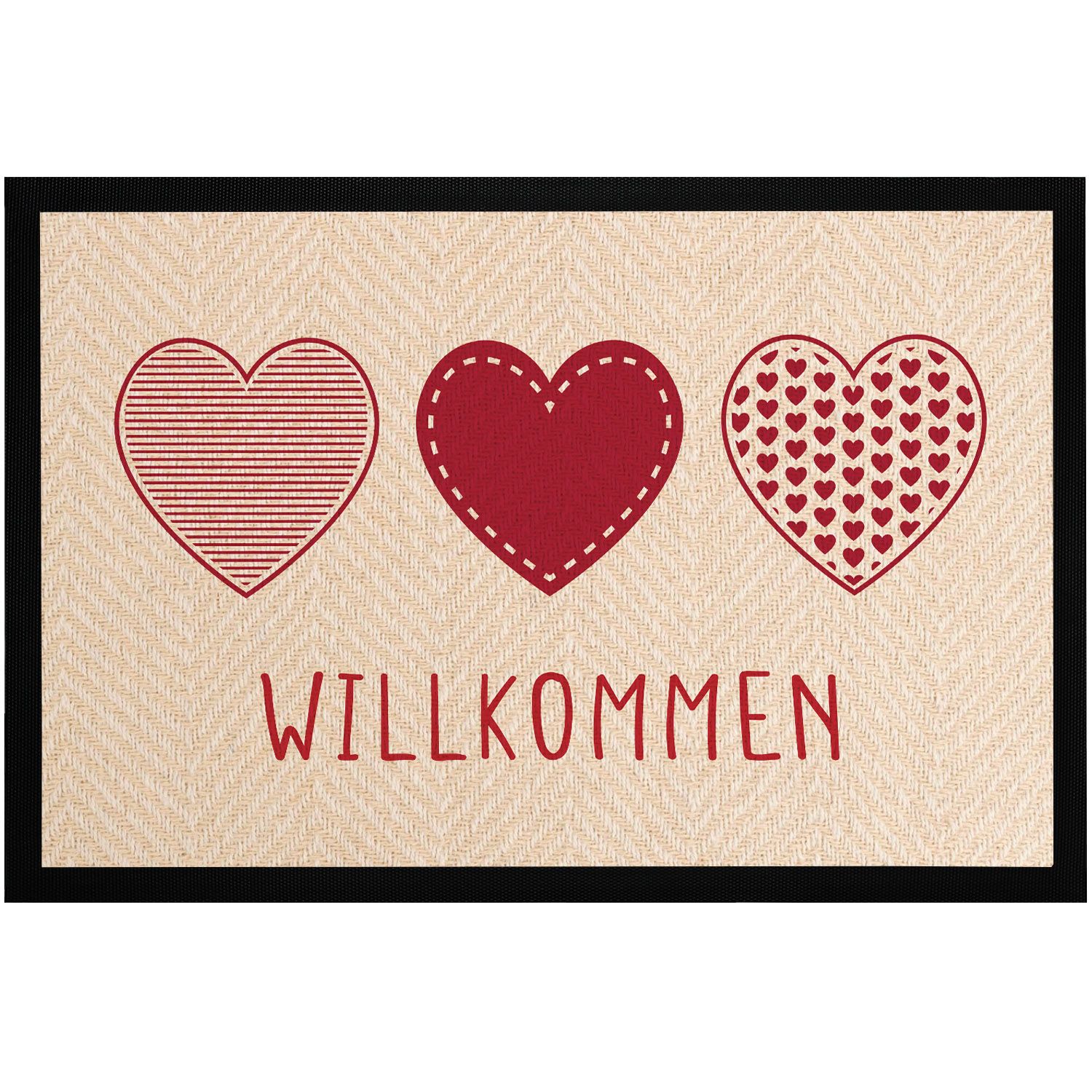 Fußmatte Willkommen Motiv Herzen Türmatte Deko Haustür Eingang rutschfest & waschbar Moonworks®