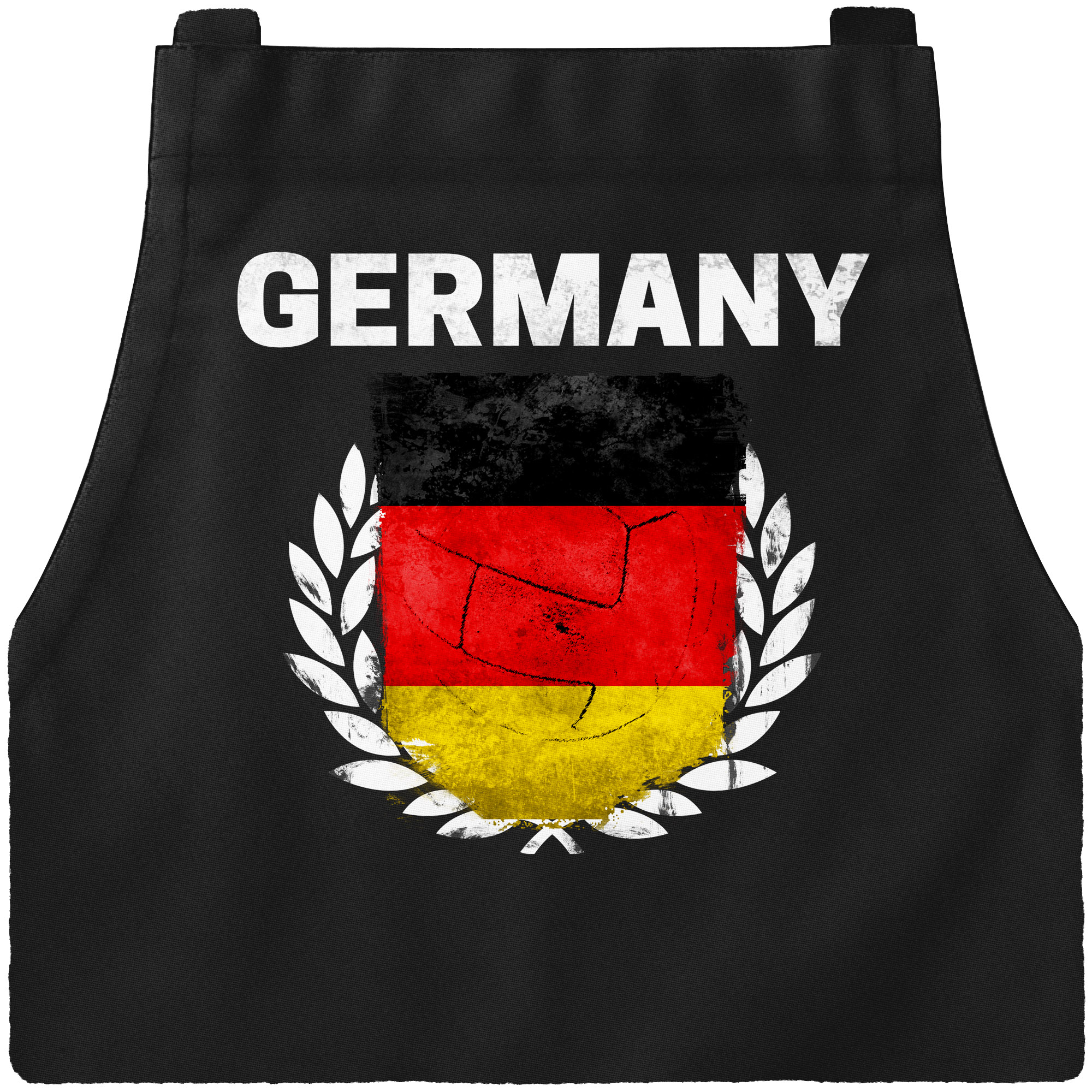 - das Must-Have für jede WM-Grillparty: coole Grillschürze für Männer mit Germany Schriftzug, Deutschland-Flagge und Siegerkranz der Marke Moonworks®