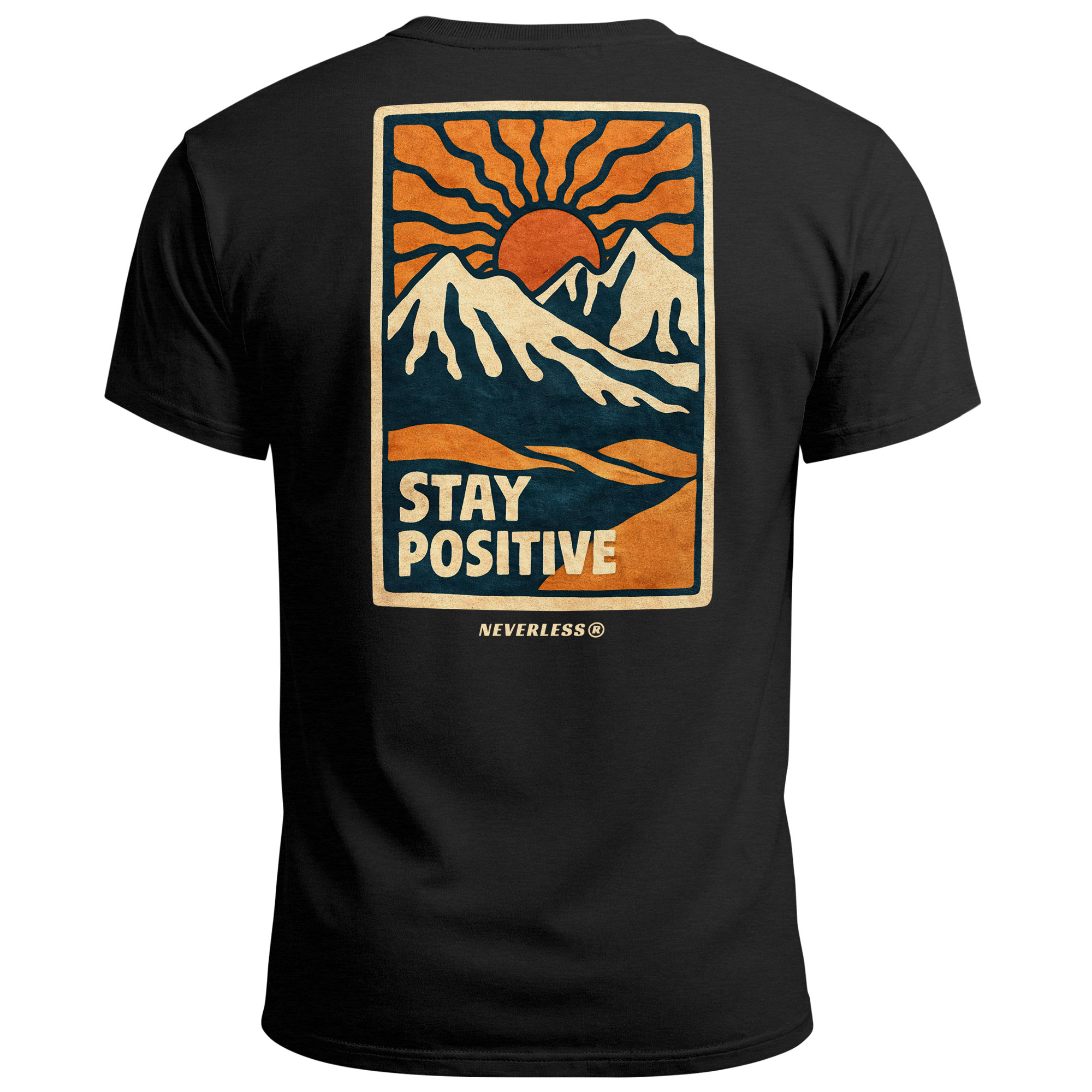 - Eyecatcher auf deinem Rücken: Mach dein Outfit zum Hingucker mit unserem Printshirt für Männer. Motivierendes Outdoor-Design mit Bergmotiv und „Stay Positive“-Statement – ideal für Streetwear-Looks mit Outdoor-Charakter und positiver Ausstrahlung