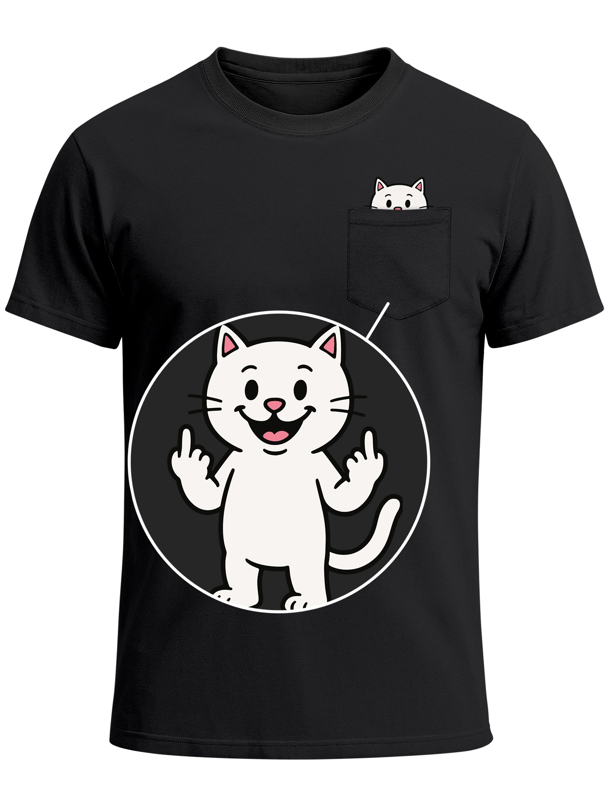 - Mach die Tasche zur Bühne: Lustige Mini-Illustrationen verstecken sich in der Brusttasche und bringen Humor direkt auf dein Shirt. Diese Katze zeigt frech beide Mittelfinger - pardon- Pfoten. Damit erübrigt sich ein Statement deinerseites