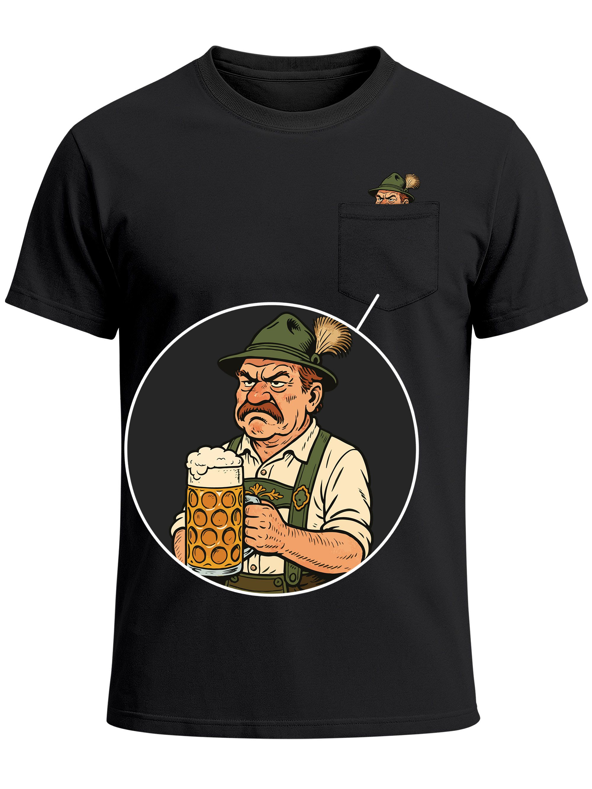 - Lustiges T-Shirt mit Brusttasche: Witziges "Wiesn-inspiriertes" Motiv, bei dem ein Grantler, ein Hirsch oder ein Ochse mit Maßkrug im Trachtenlook scheinbar aus der Tasche hervorschaut - Ideal für Volksfest, Biergarten oder als originelles Geschenk für Männer mit Humor und Liebe zur bayrischen Tradition