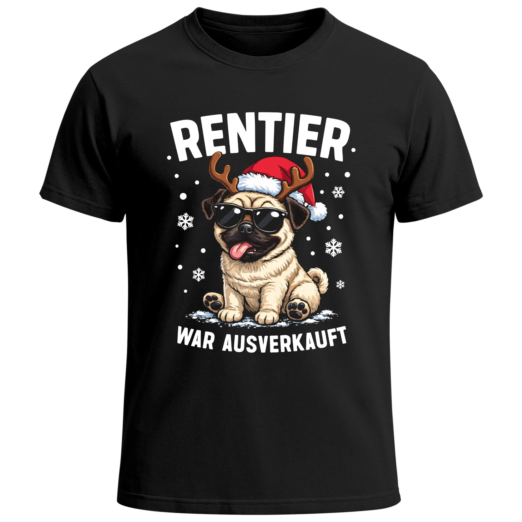 - Lustiges Christmas-Shirt für Männer mit Christmas Grafik Print: Mit lustigem Spruch „Rentier war ausverkauft“ und witzigem XMAS-Mops mit Sonnebrille im Santa Outfit- der perfekte Fun-Look für Weihnachten und jede Party