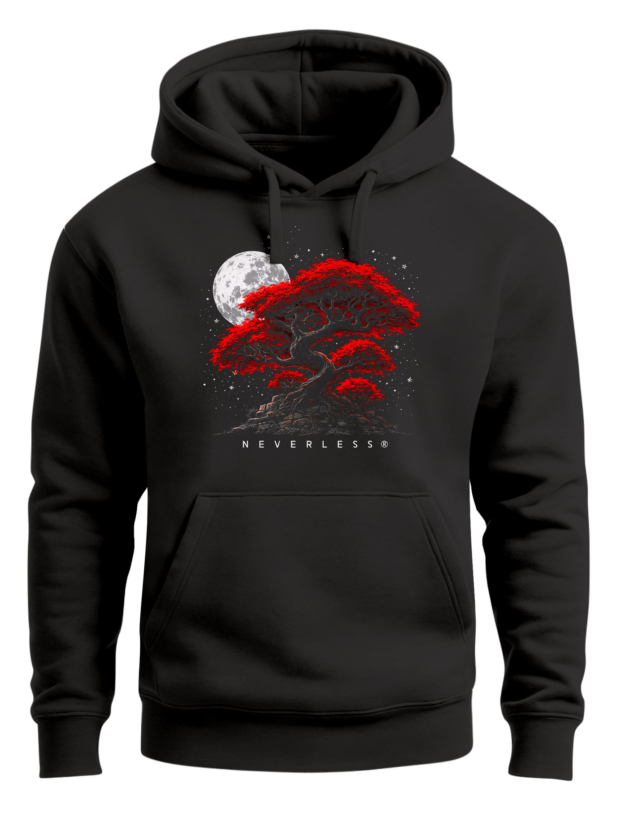 - Ein Kapuzenpullover für Männer, der mit einem ausdrucksstarkem Frontprint punktet: Künstlerisches Asien-Design mit rotem Baum und Mond – starkes visuelles Statement mit Japan-Vibes für moderne Streetwear