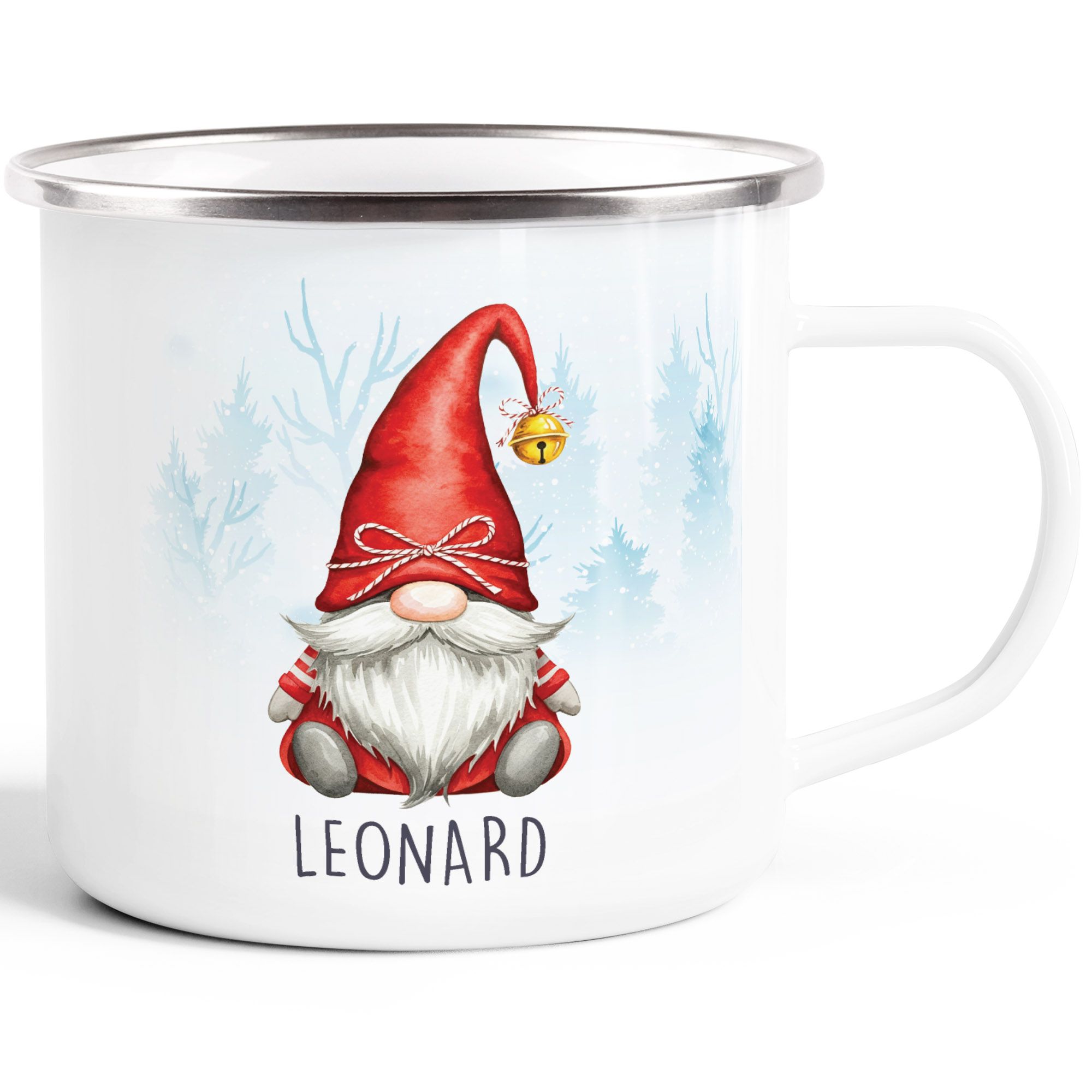 - Personalisierbare Kinder-Emailletasse mit niedlichem Weihnachtszwerg/Gnom/Tomte und anpassbar mit dem eigenen Name – bruchfest, leicht & perfekt für Kindergarten, Schule und Ausflüge. Ein liebevolles Geschenk für kleine Weihnachtsfans!