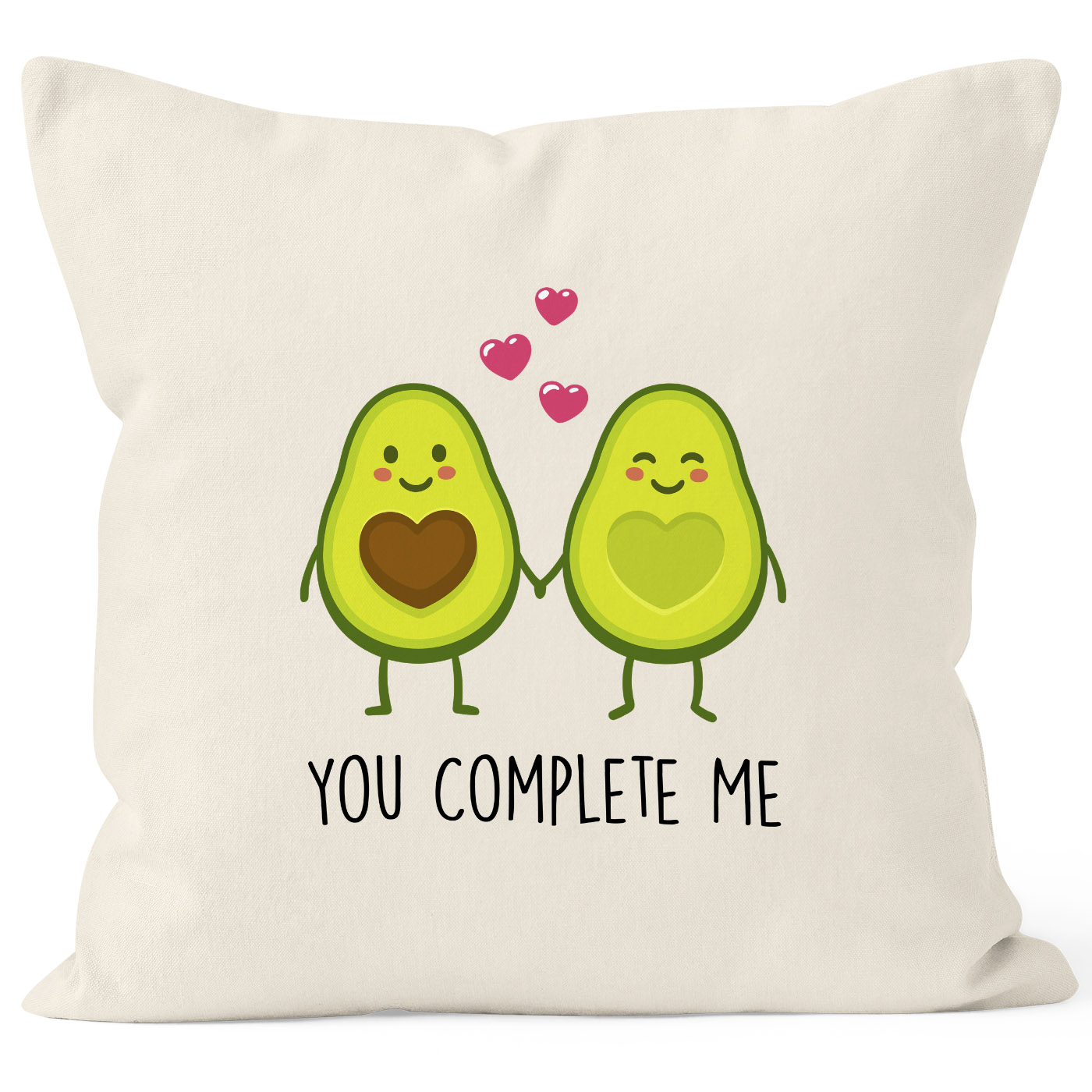 - das perfekte Geschenk zu Valentinstag oder dem Jahres- oder Hochzeitstag: niedliche Kissenhülle mit zwei verliebten Avocado-Hälften und "You complete me" Shcirftzug aus der aktuellen Moonworks® Kollektion