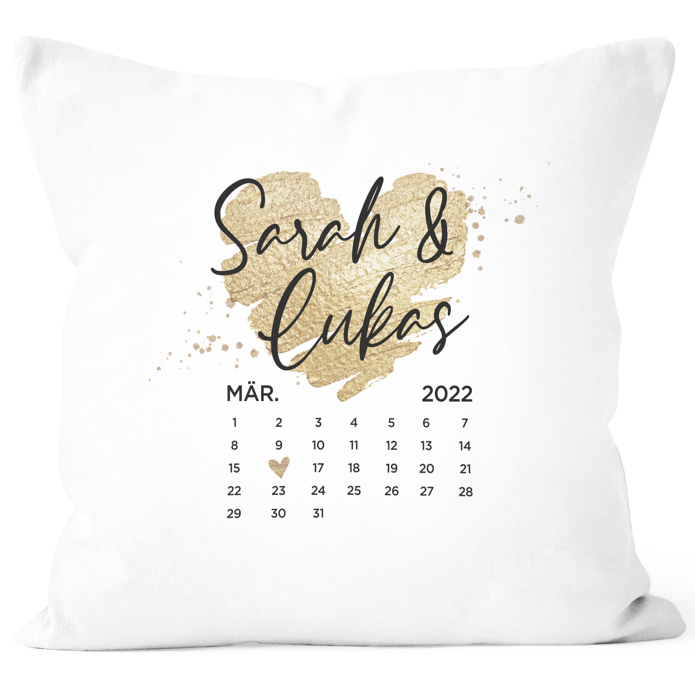 - Edle Kissenhülle mit Kalender-Motiv. Personalisierbar mit Wunschnamen und individuell anpassbarem Datum ist das Kissen perfekt als Geschenk zum Hochzeitstag, Jahrestag, Valentinstag oder als kleines Geschenk zur Hochzeit