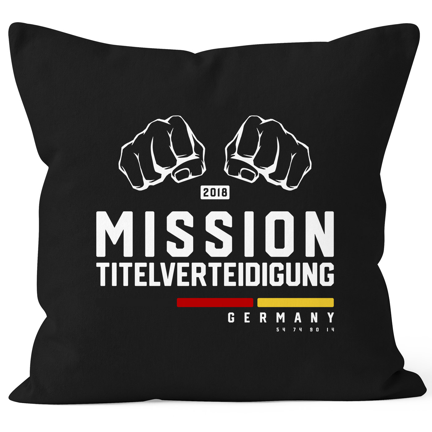 - die perfekte Dekoration zur WM: Kissenhülle mit kraftvollem Motiv mit zwei Fäusten, "Mission Titelverteidigung" und den Deutschland-Farben Schwarz Rot Gold aus der aktuellen Moonworks® Kollektion