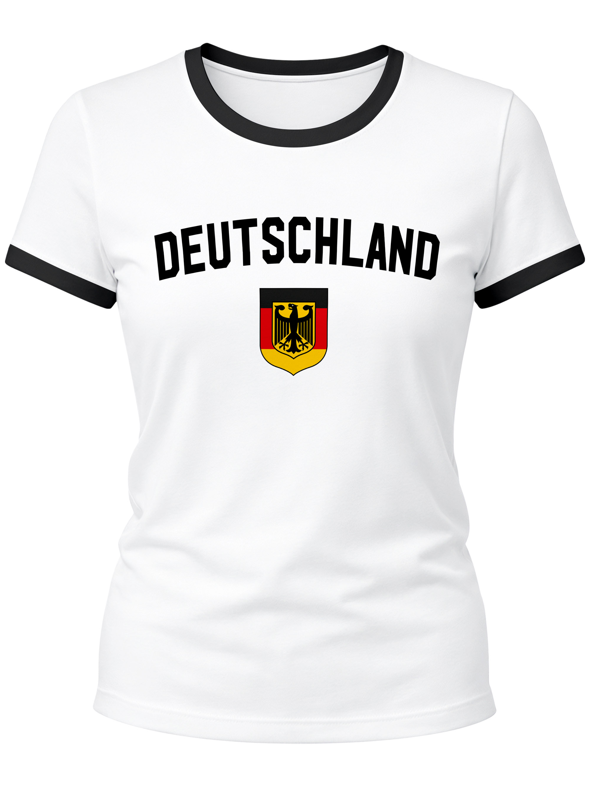 Klassisches Damen WM-Shirt Deutschland Flagge Retro Trikot-Look Fan-Shirt