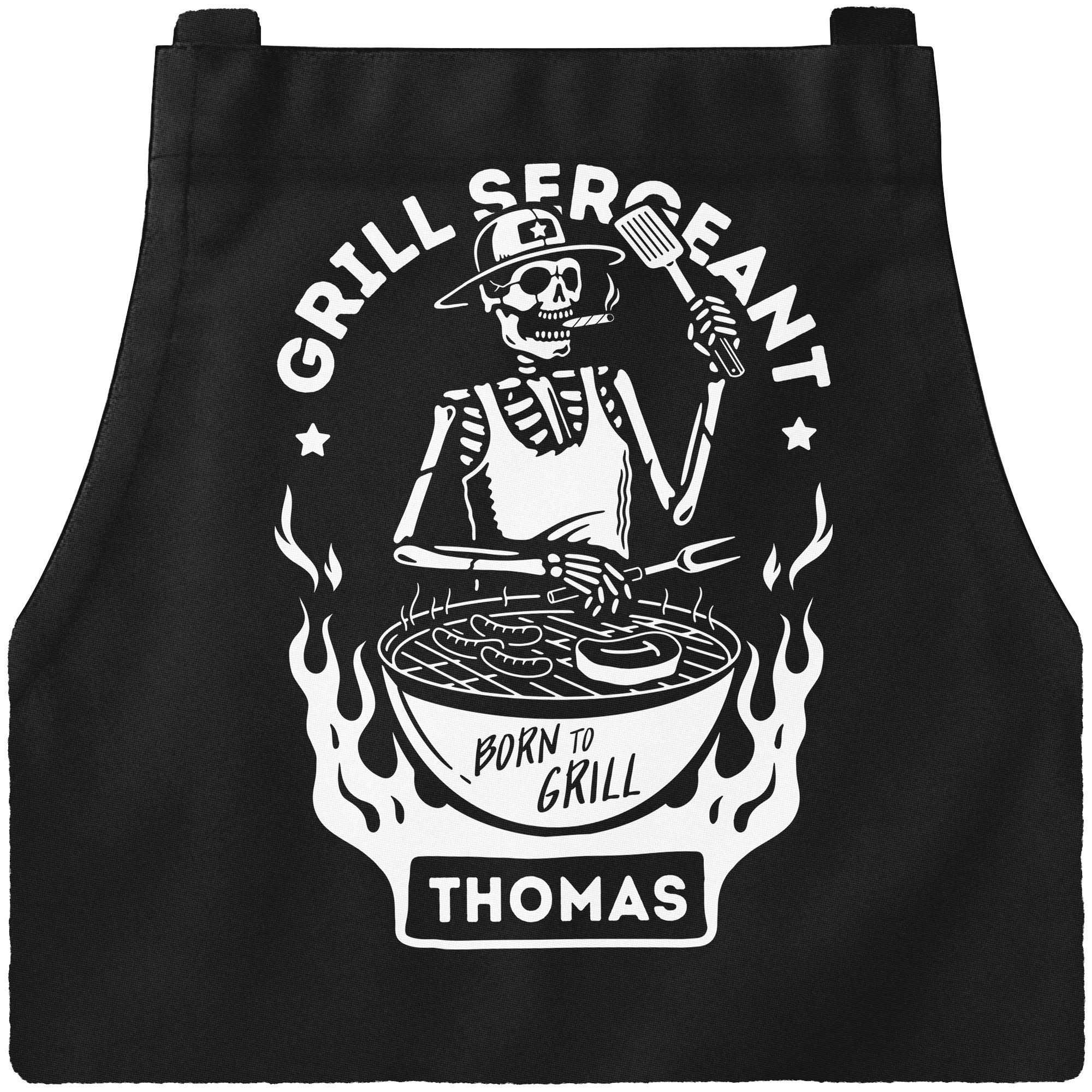 - ORIGINELLES DESIGN: Grillseargent [eigener Name] Born to Grill, Grillschürze mit eigenem Namen, personalisierbar, Wunschname