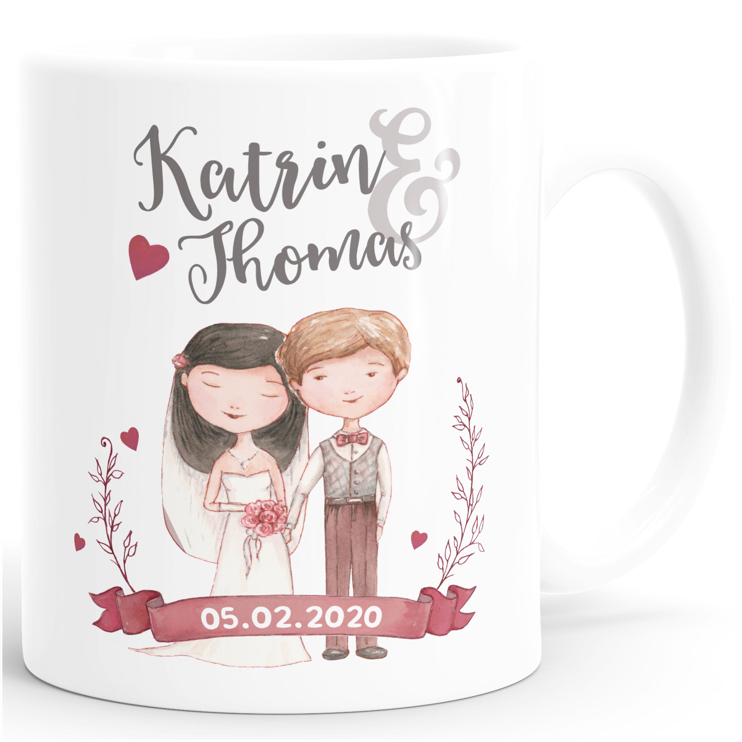 - Wenn zwei sich das Ja-Wort geben, ist das ein ganz besonderer Tag, voller Liebe und Glück. Und Hochzeitsgeschenke sollen zu diesem emotionalen Ereignis passen. Mit dieser personalisierbaren Kaffeetasse mit anpassbaren Namen und Datum bist du auf der sicheren Seite!