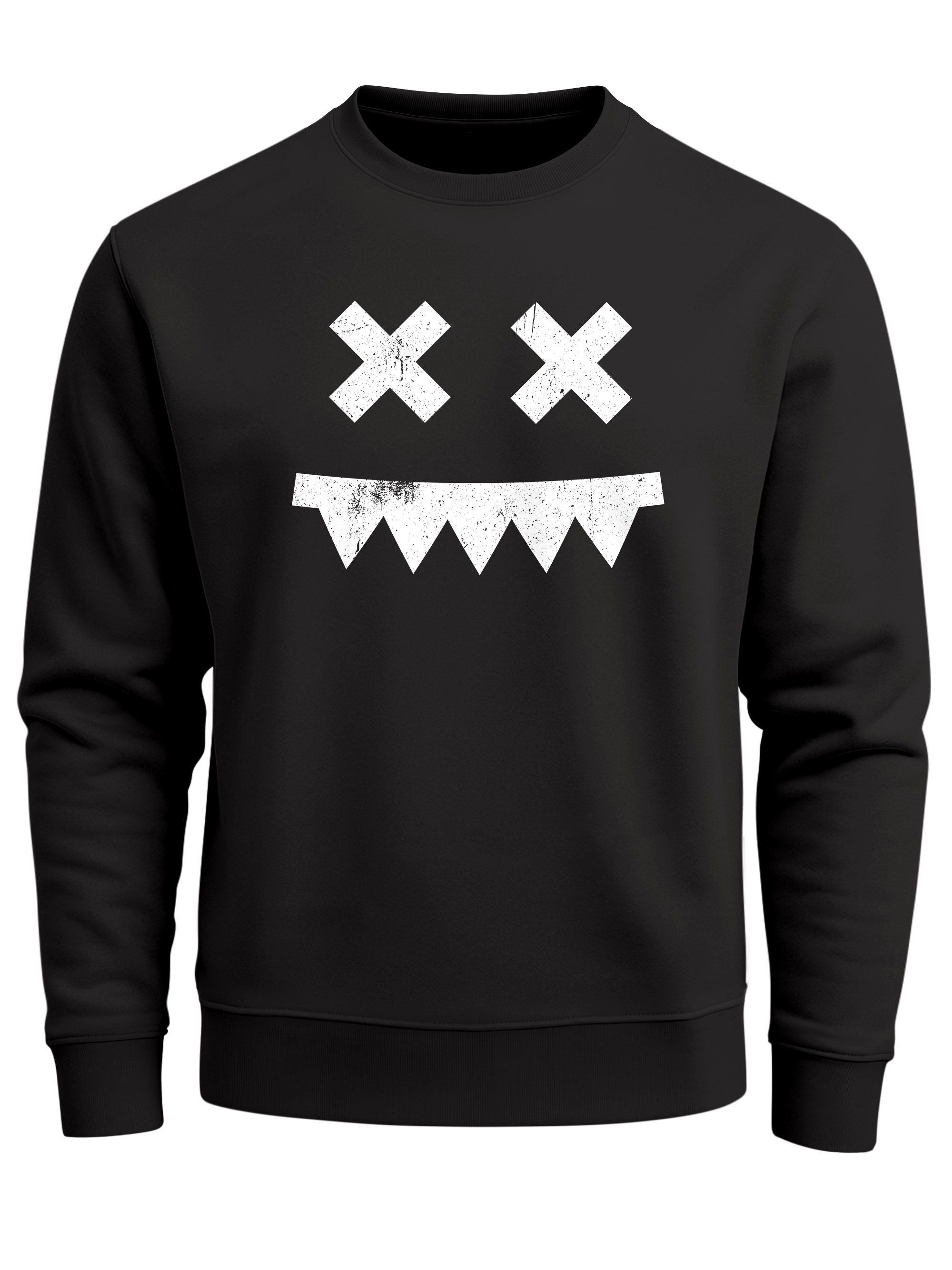 Sweatshirt Herren Frontprint Grunge Print Face Smile Pullover mit Print Fashion Streetwear Neverless®