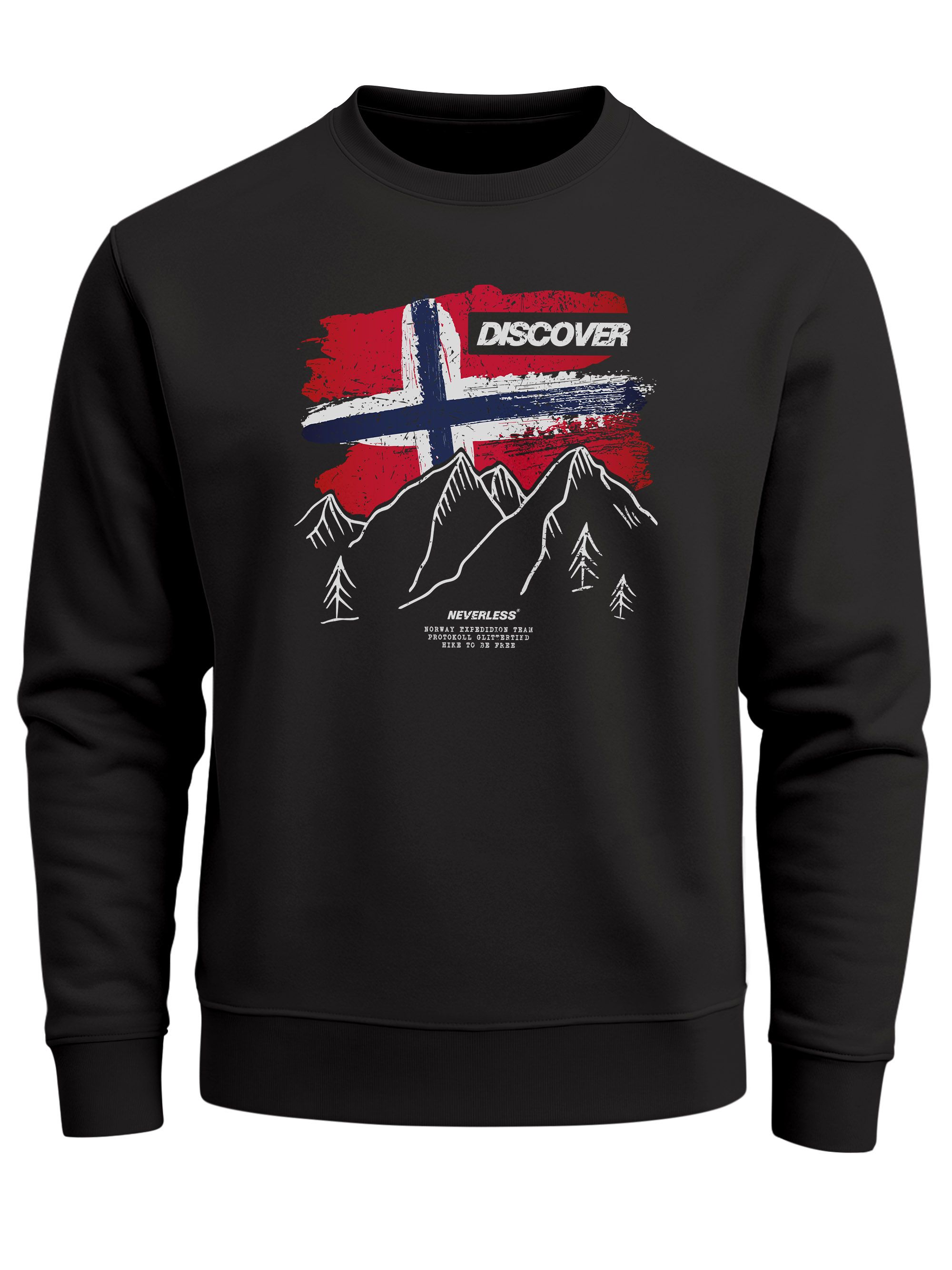 Sweatshirt Herren Frontprint Pullover mit Print Discover Norway Outdoor Design mit Flagge und Bergmotiv Fashion Streetwear Neverless®
