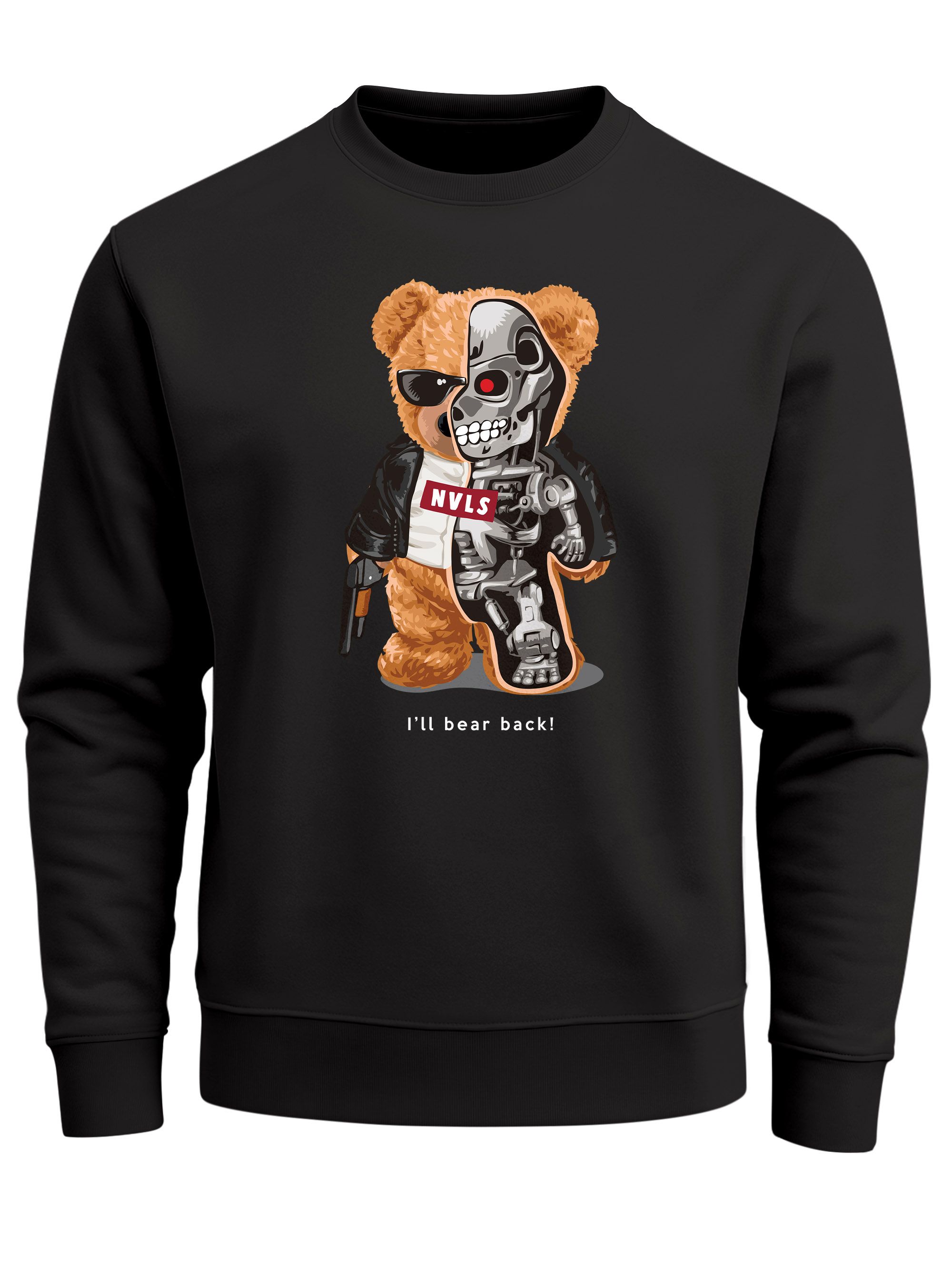 Sweatshirt Herren Frontprint Pullover mit Print I’ll Bear Back Teddy mit Cyborg Design Fun Streetwear Fashion Neverless®
