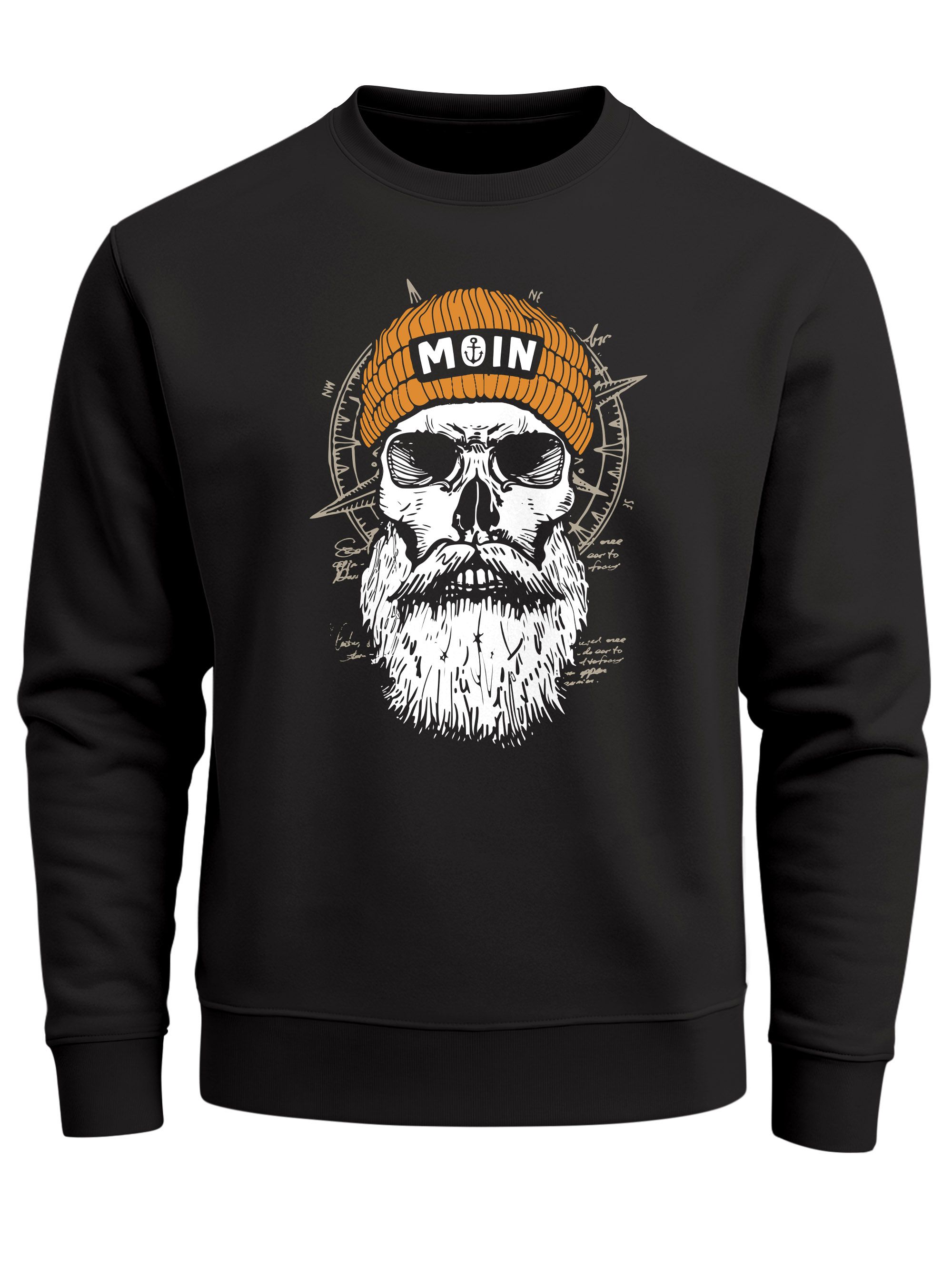 • COOLES SWEATSHIRT FÜR HERREN – Maritimes Design mit bärtigem Totenkopf, Anker und „Moin“-Schriftzug. Perfektes Sweatshirt für Fans norddeutscher Kultur und rauer Streetwear