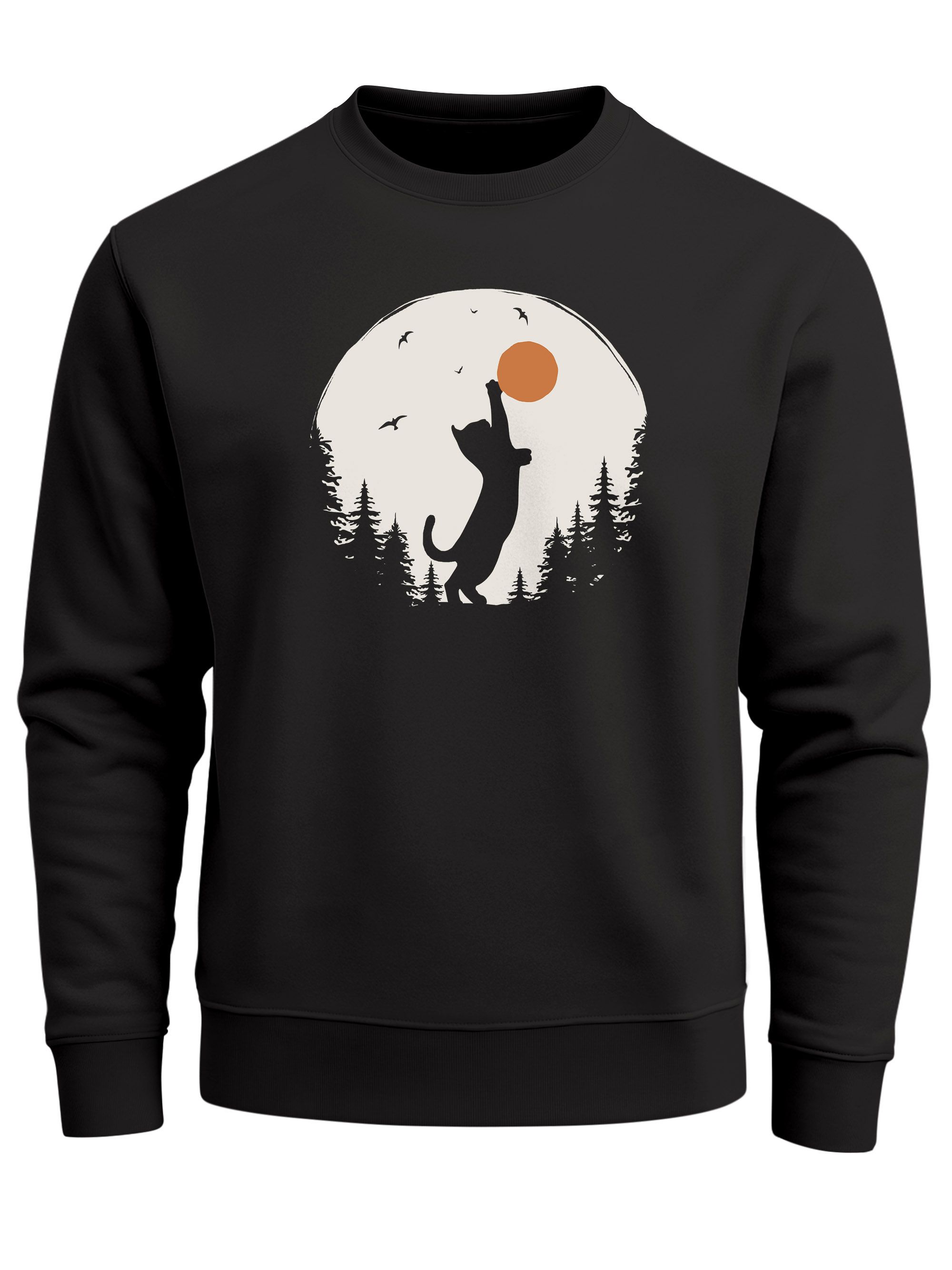 Sweatshirt Herren Frontprint Pullover mit Print Naturmotiv mit Katze Sonne Outdoor Fashion Streetwear Neverless®