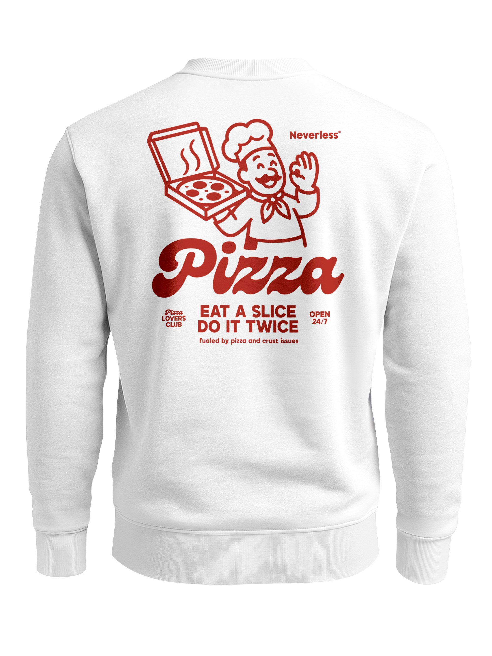 Sweatshirt Herren Pullover mit Backprint Pizza Eat a Slice Fashion Streetwear Fun Food Print Retro Style Neverless®