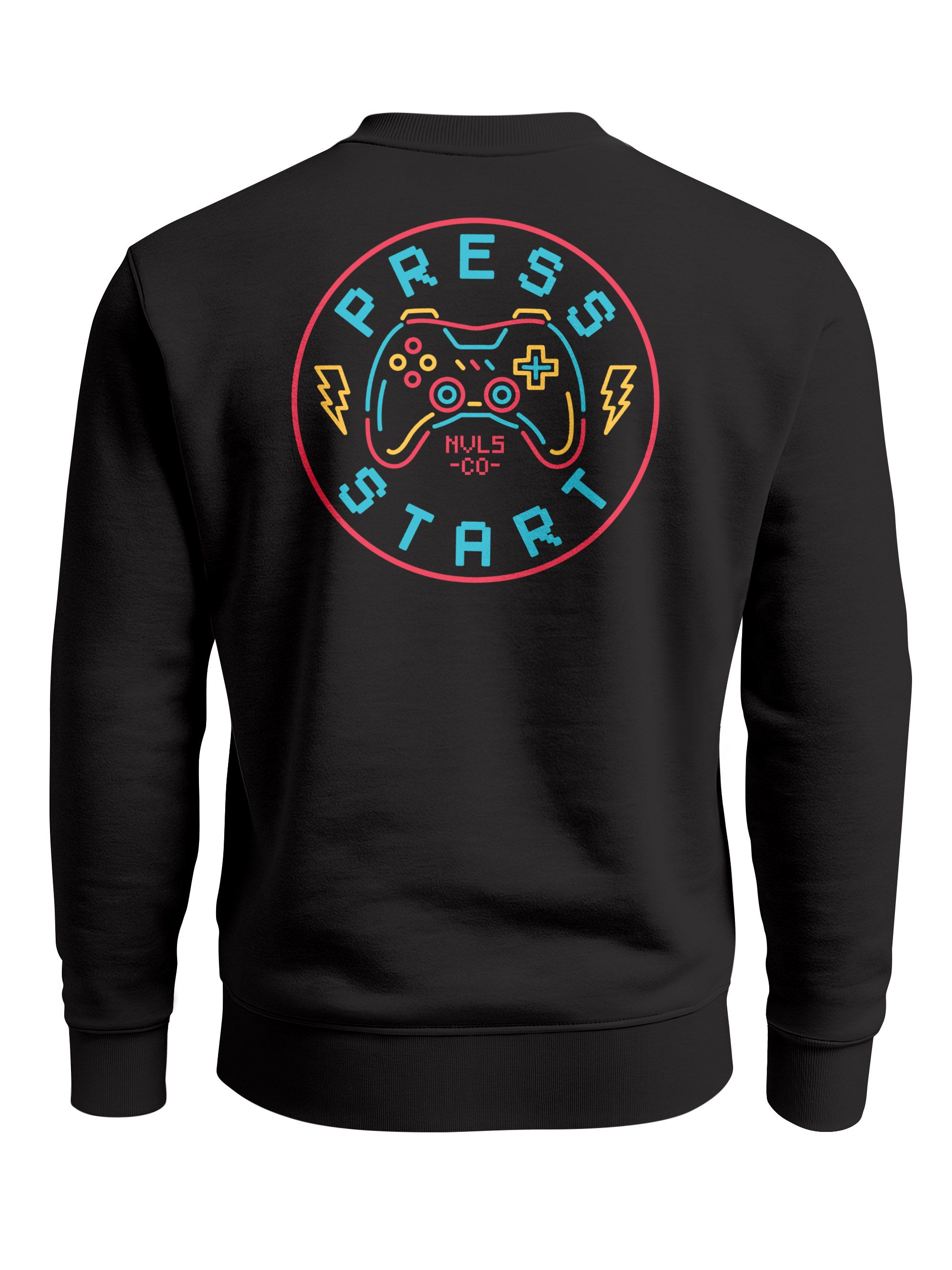 • COOLES SWEATSHIRT FÜR HERREN – mit Retro-Controller und „Press Start“-Schriftzug. Perfekt für Zocker und Streetwear-Fans – ein Backprint wie gemacht für die nächste Lan Party