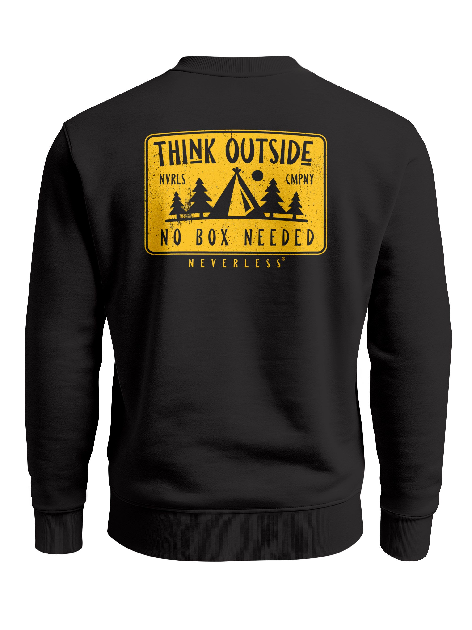 Sweatshirt Herren Pullover mit Backprint Think Outside Outdoor Backprint mit Zeltmotiv Adventure Streetwear Fashion Neverless®