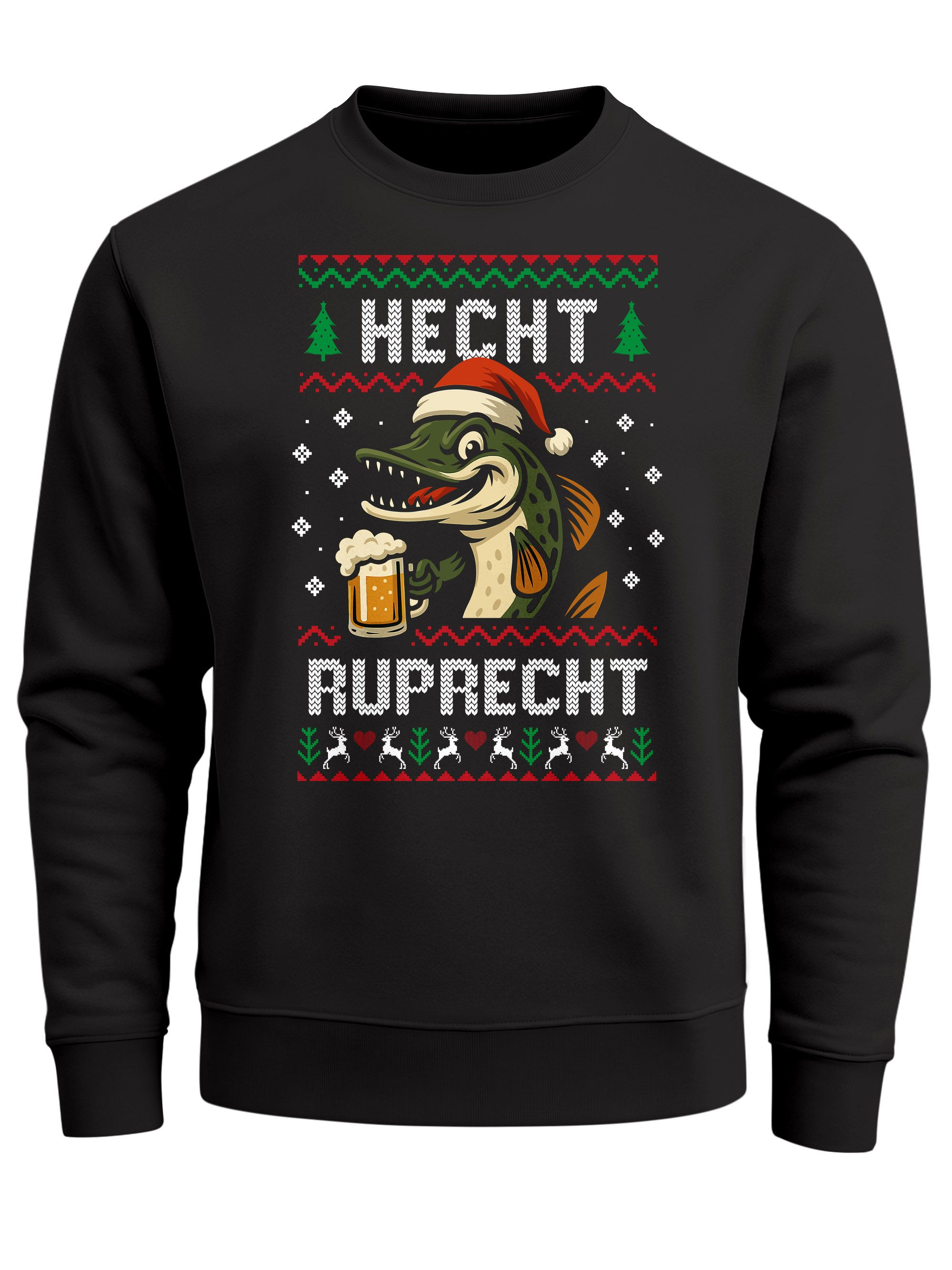 - Cooler Weihnachts-Sweater „Hecht Ruprecht“ – das perfekte Geschenk für Angler, Fischer und Bierliebhaber. Lustiges Ugly Christmas Motiv mit Weihnachtsmütze und witzigem Wortwitz Design