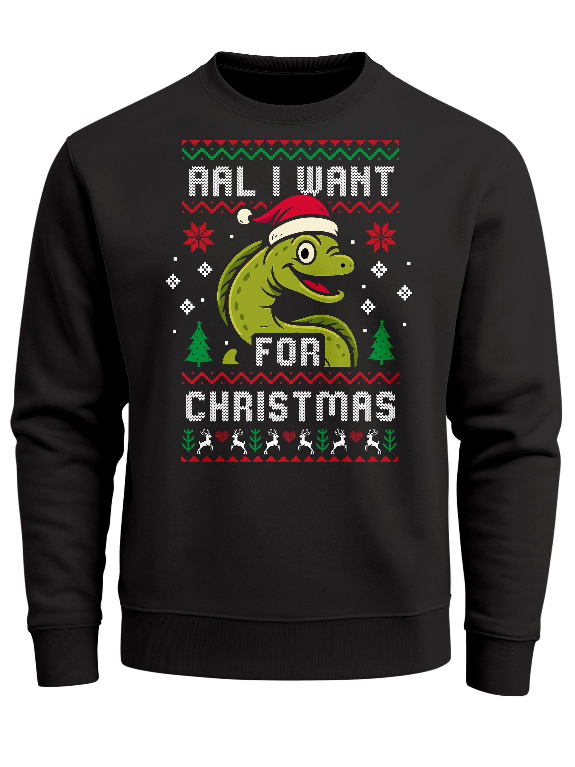 - Lustiger Ugly Christmas Sweater „Aal I Want for Christmas“ – perfektes Weihnachtsgeschenk für Angler, Fischer und Freunde von Wortspielen. Ideal für Festtage und Feiern. Das perfekte Spaß-Outfit zur Weihnachtszeit.