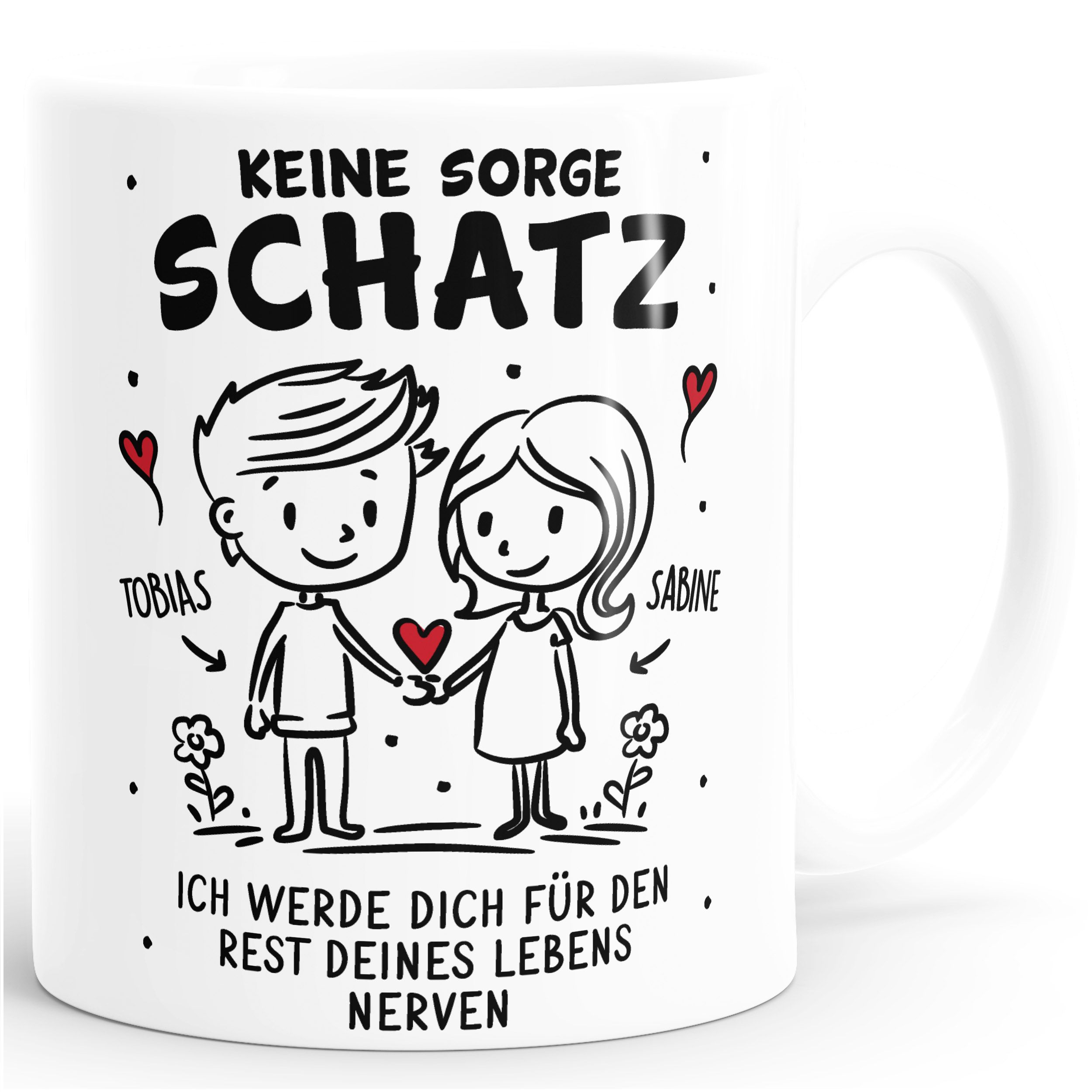 - Eine Liebeserklärung der eher unkonventionellen Art: "Keine Sorge Schatz, ich werde dich für den Rest deines Lebens nerven." Humor verbindet! Wenn ihr über dieselben Sachen lachen könnt - und diese personalisierbare Tasse dazugehört-dann hast genau das richtige Geschenk für deine(n) Liebste(n) gefunden
